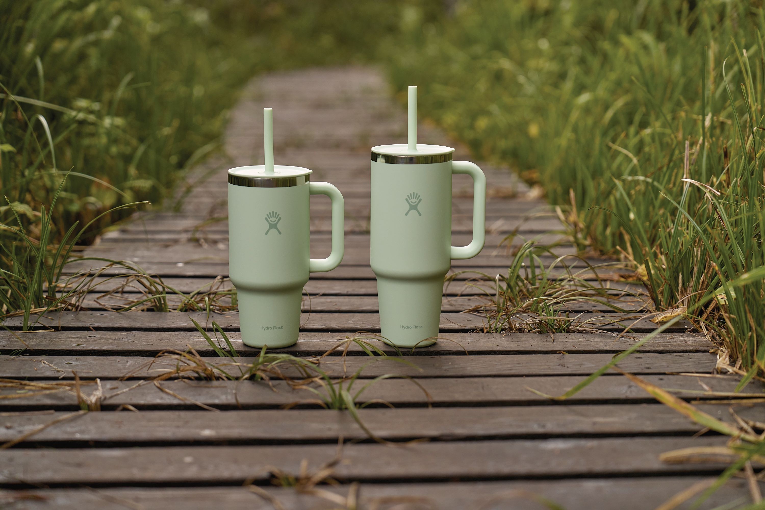 “All Around Travel” čaša s ručkom i slamkom, kapaciteta 950 ml, izrađena od nehrđajućeg čelika 18/8, proizvođača Hydro Flask.
