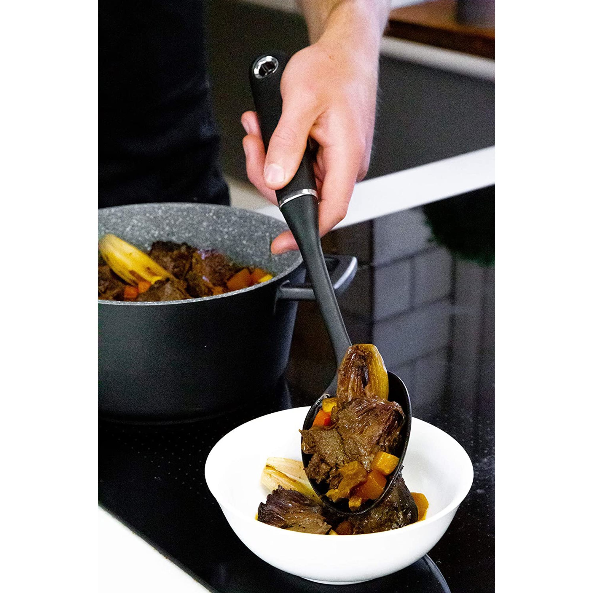 Ez a prémium minőségű, puha nyéllel ellátott főzőkanál ideális tálaláshoz, keveréshez vagy kényes ételek edényből való kivételéhez.