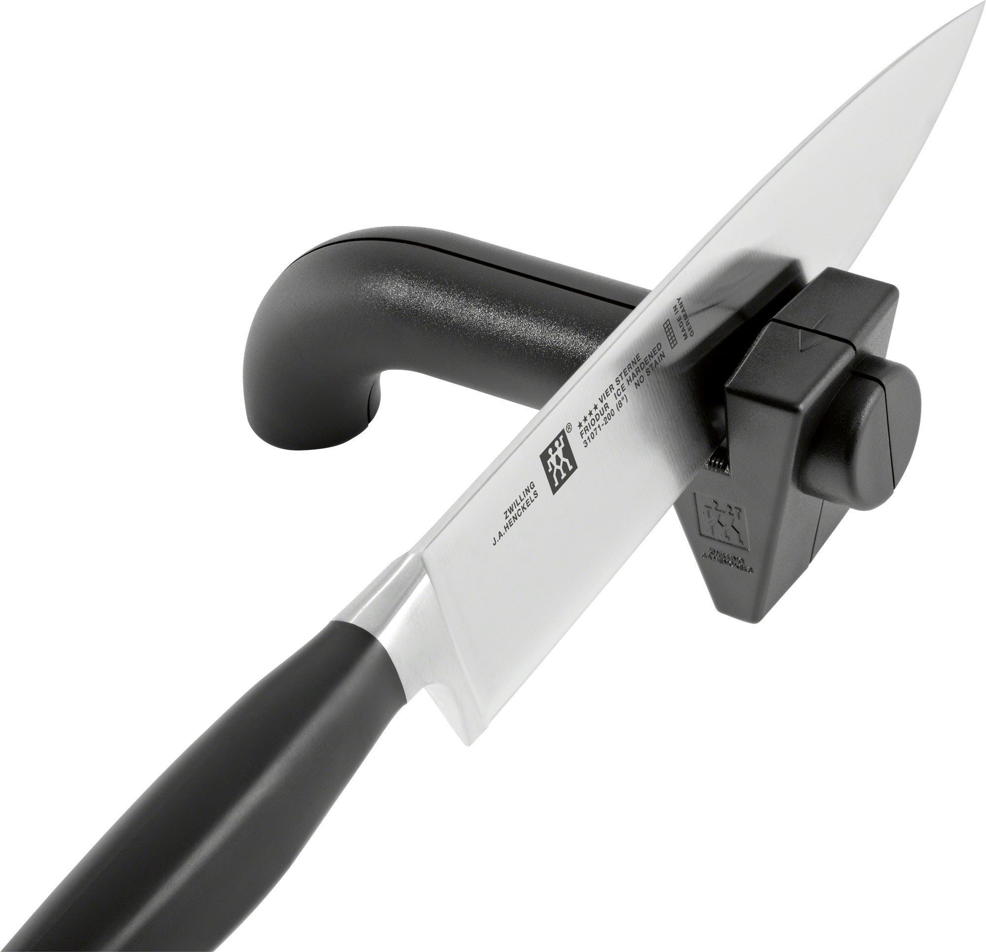 Questo affilacoltelli Zwilling aiuta a riportare i coltelli alla loro affilatura originale e garantisce un alto livello di sicurezza durante l'utilizzo.