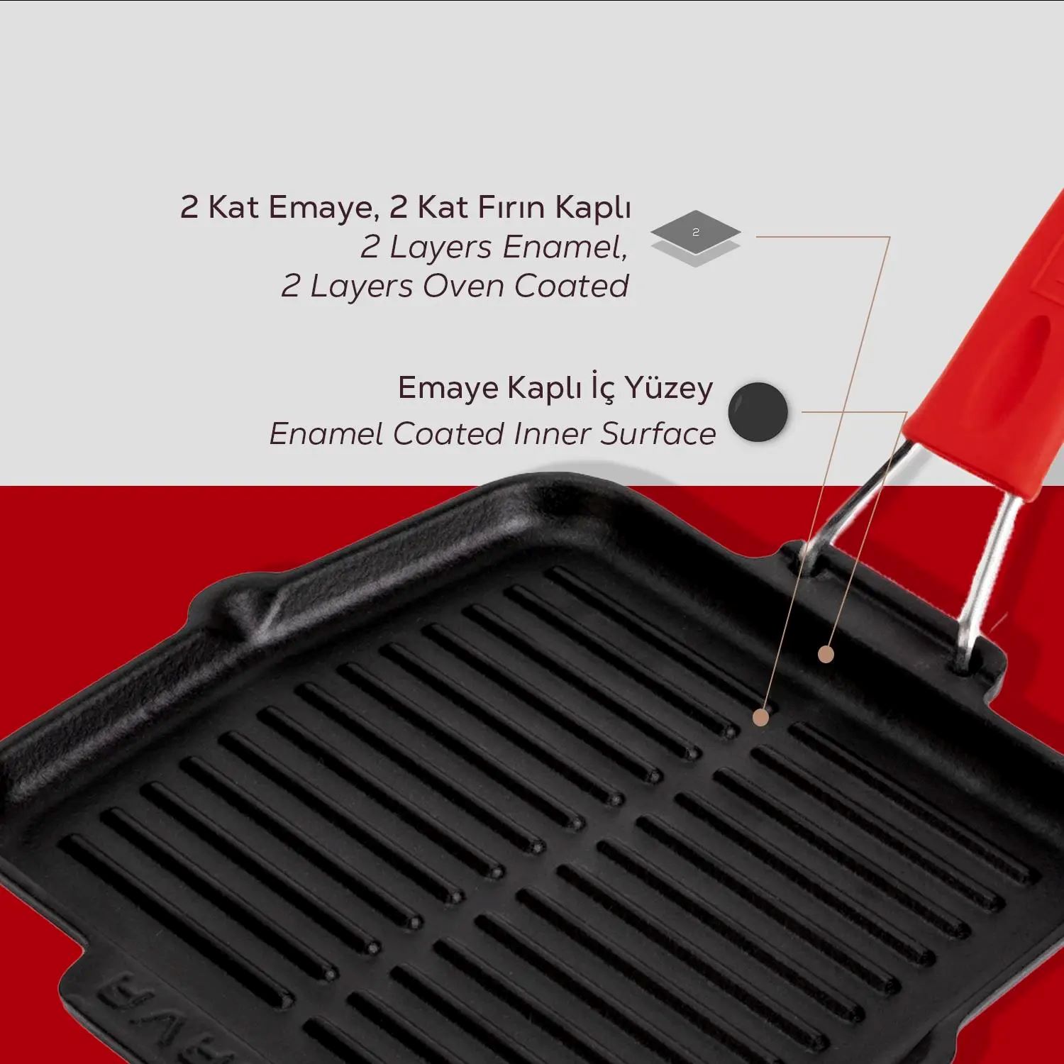Padella grill quadrata, dimensioni 21 x 21 cm, in ghisa, marca Lava