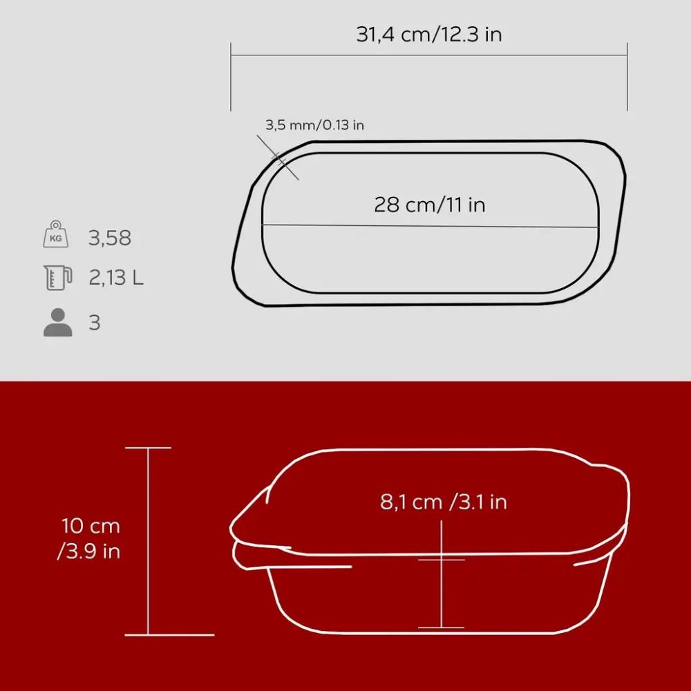 Portapane rettangolare con coperchio, in ghisa, dimensioni 28×12 cm, capacità 2,13 l.