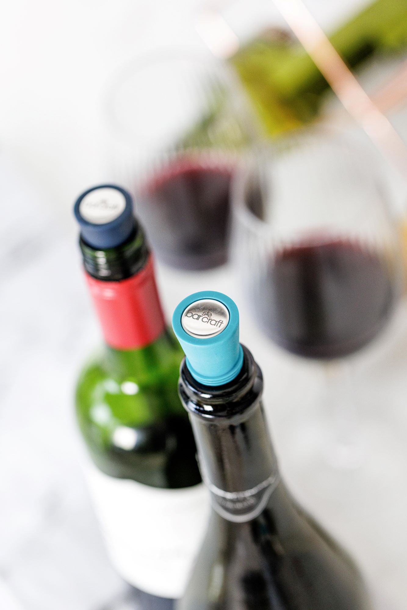 2 hermetiškų „BarCraft“ kamščių rinkinys , skirtas išlaikyti burbuliukus ir gėrimus šviežius ilgiau.