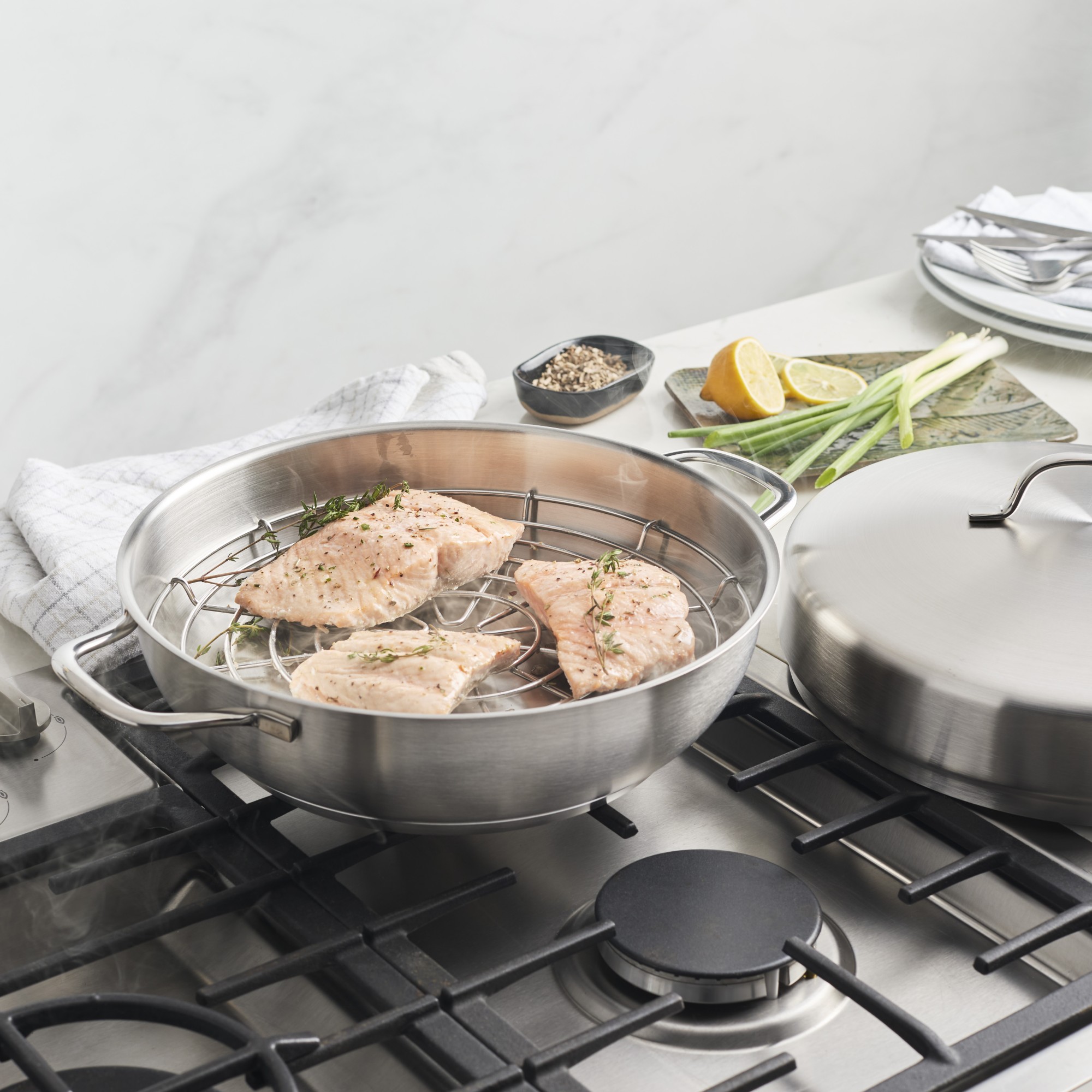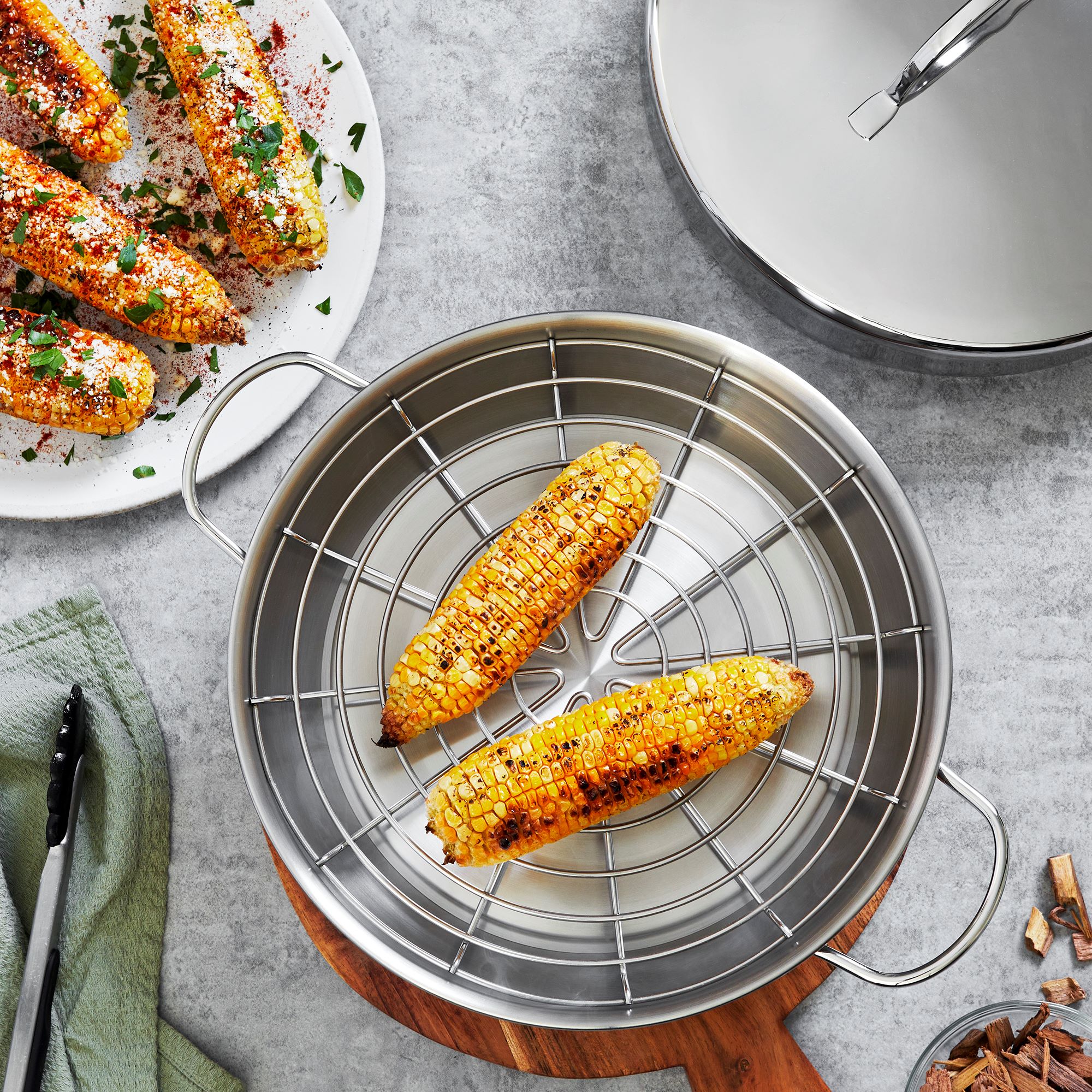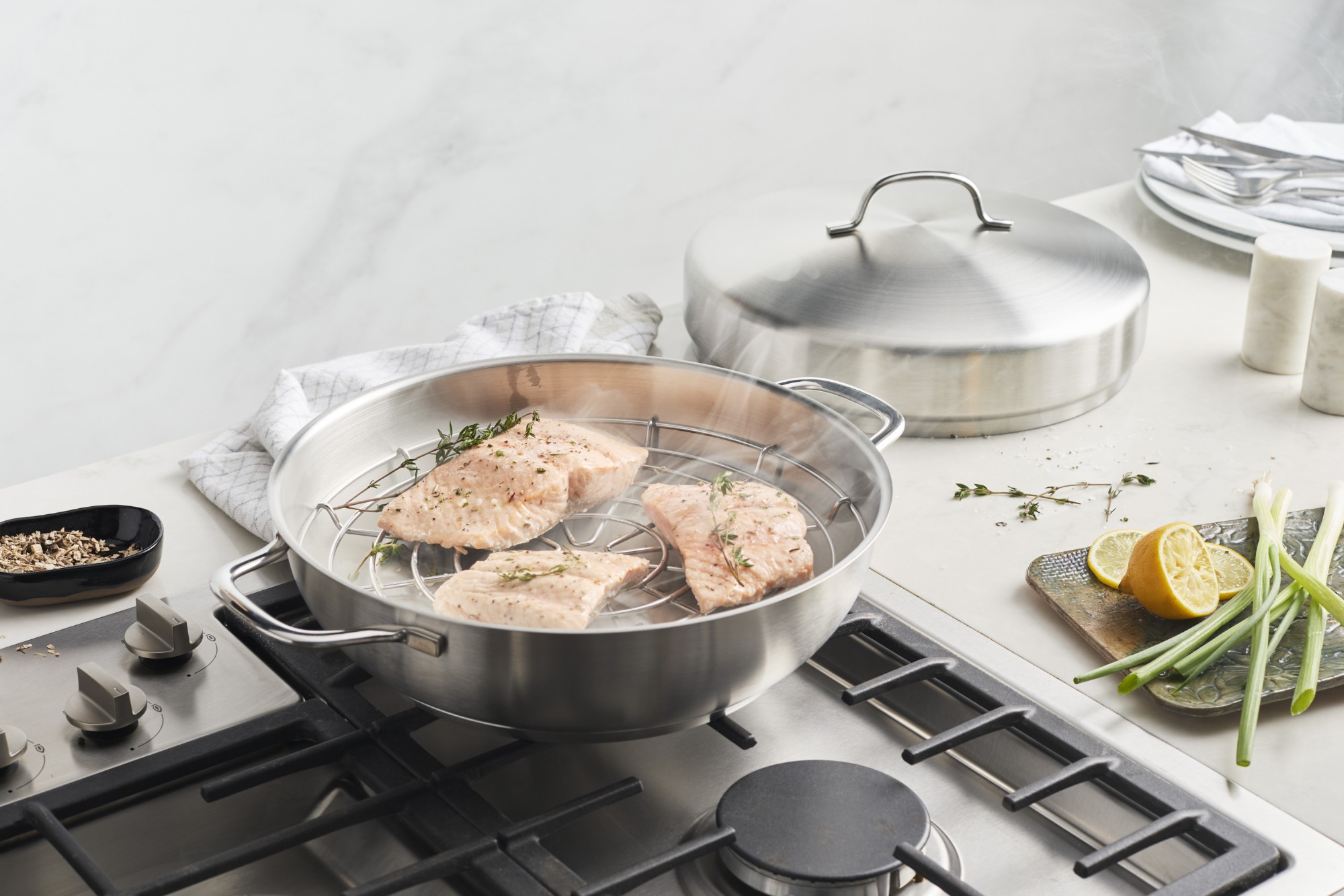Rūkymas kaip maisto gaminimo technika tampa vis populiaresnė, todėl „Demeyere“ sukūrė šį rūkymo rinkinį , kurį sudaro: 28 cm skersmens keptuvė, rūkymo kamera, grotelės ir aukštas dangtis.