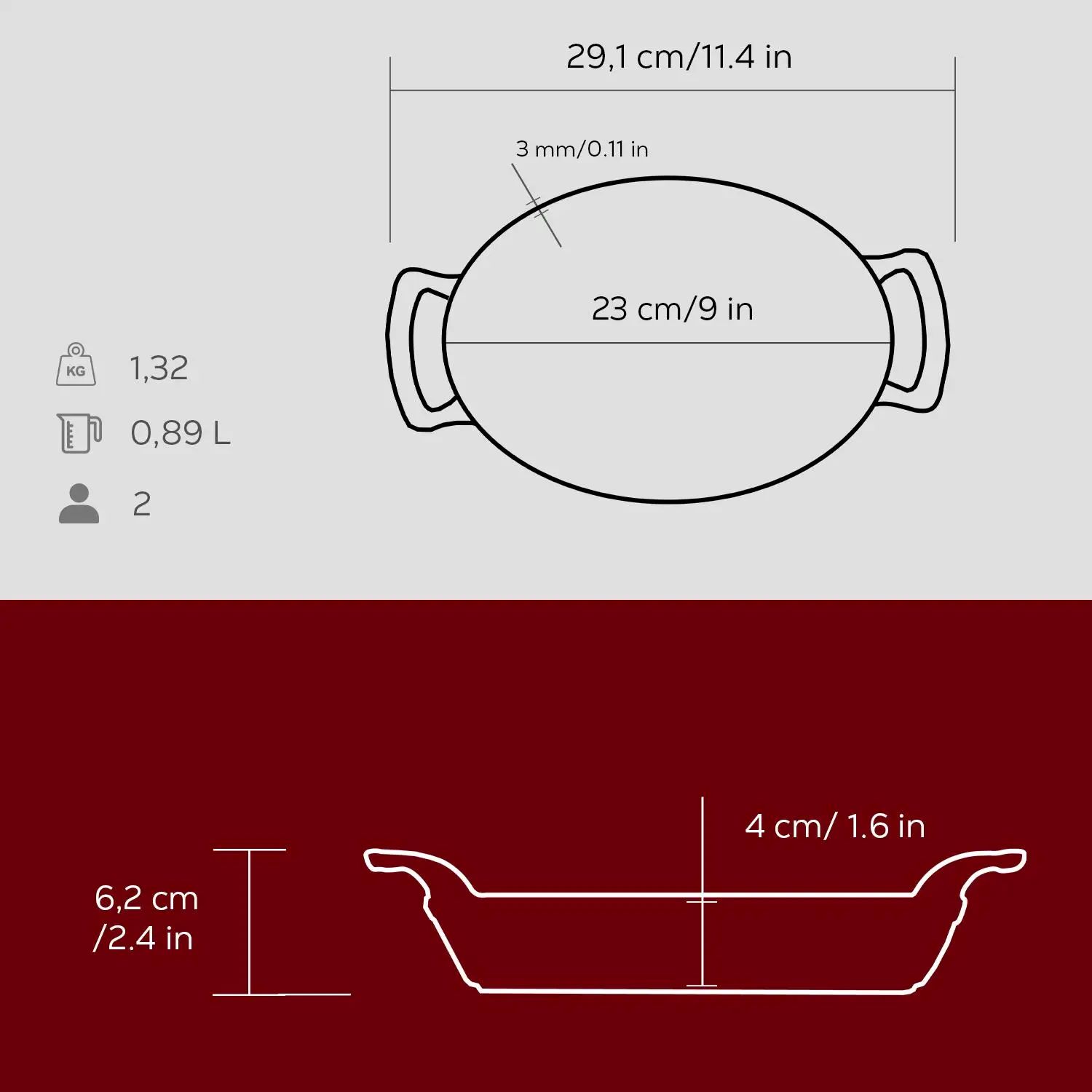 Ovali orkaitės forma, ketaus, 23 x 17 cm, raudona - LAVA