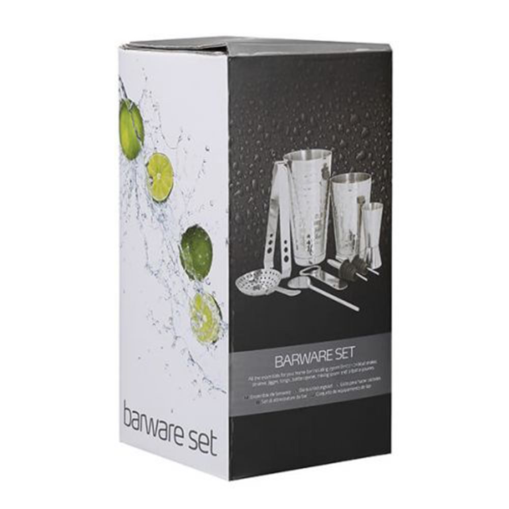 Rinkinį sudaro 750 ml talpos dviejų dalių Boston kokteilių plaktuvas (pageidautinas profesionalių „miksologų“ pasirinkimas) ir visas būtiniausių priedų rinkinys – 25/50 ml talpos dvigubas matavimo puodelis, butelio atidarytuvas, maišymo šaukštas, žnyplės ledui, koštuvas ir du varvėjimo kamščiai su silikoninėmis tarpinėmis.