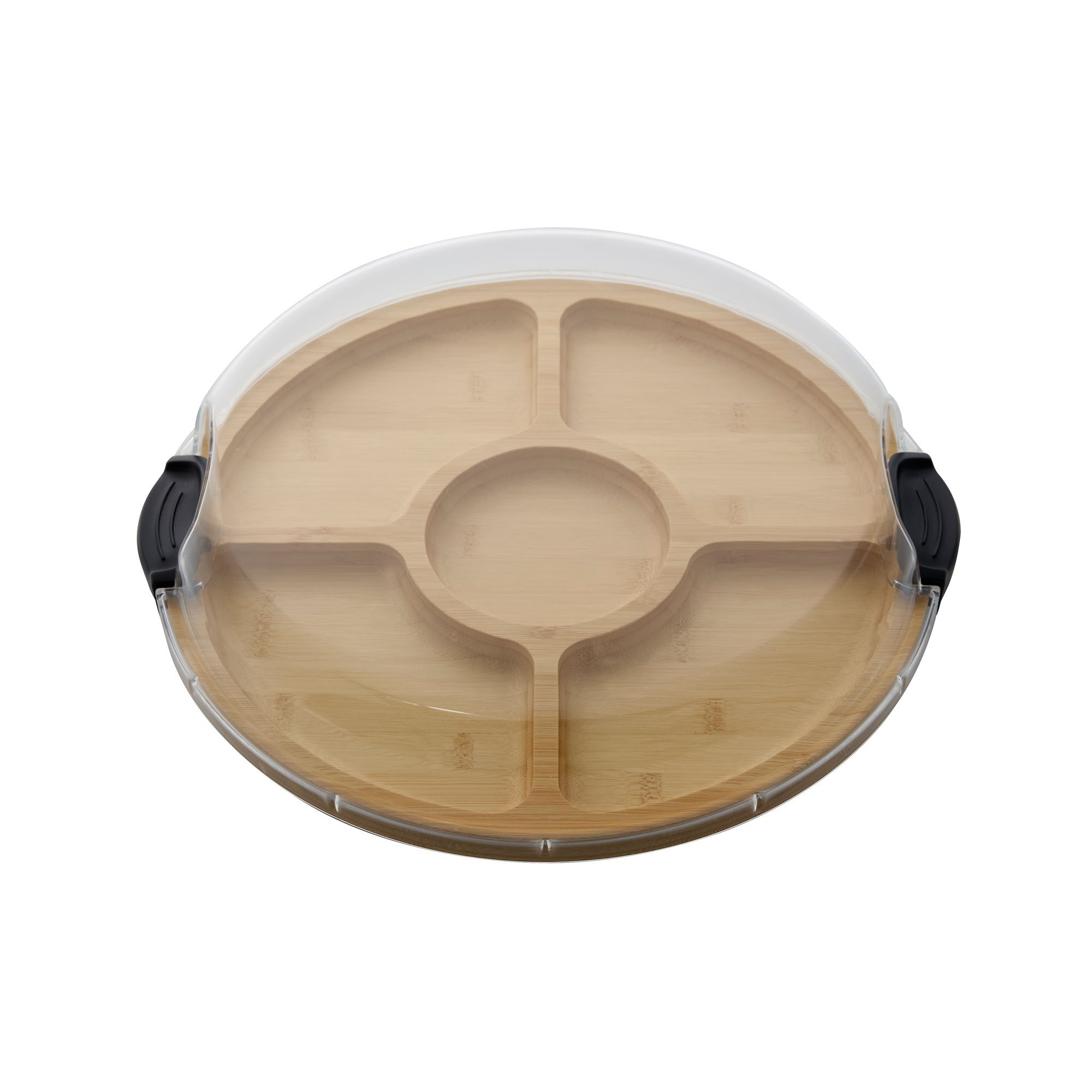 Servavimo lenta su skyriais, Farberware™ Build-a-Board , pagaminta iš bambuko, 35,5 cm skersmens, su plastikiniu dangteliu