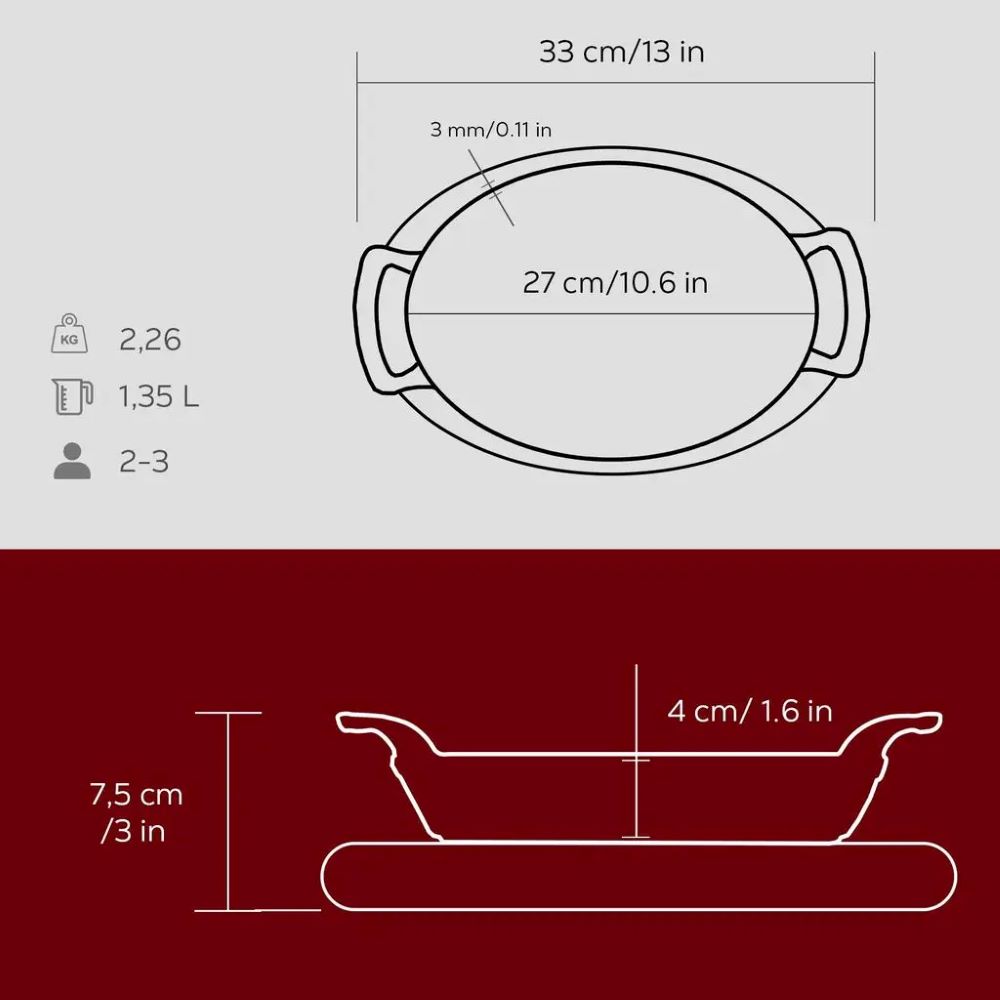Dixx ovali tal-ħadid fondut, 27 x 20 cm, bi stand tal-injam, aħmar - marka LAVA