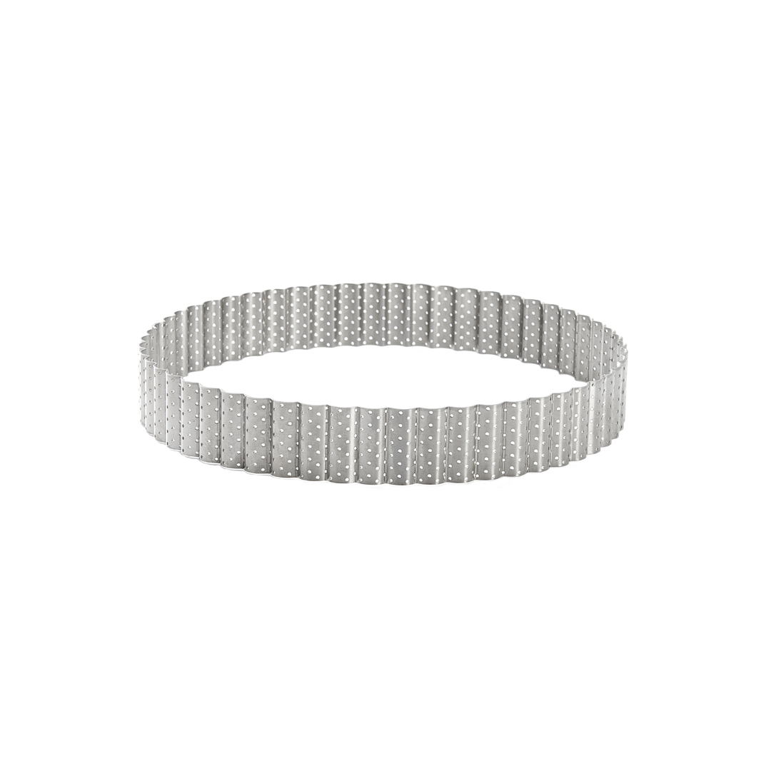 Ċirku ċirkolari b'perforazzjoni għall-preparazzjoni ta' tarts u quiches, b'xifer flutjat, dijametru ta' 20 cm, magħmul mill-azzar li ma jissaddadx, prodott minn de Buyer.
