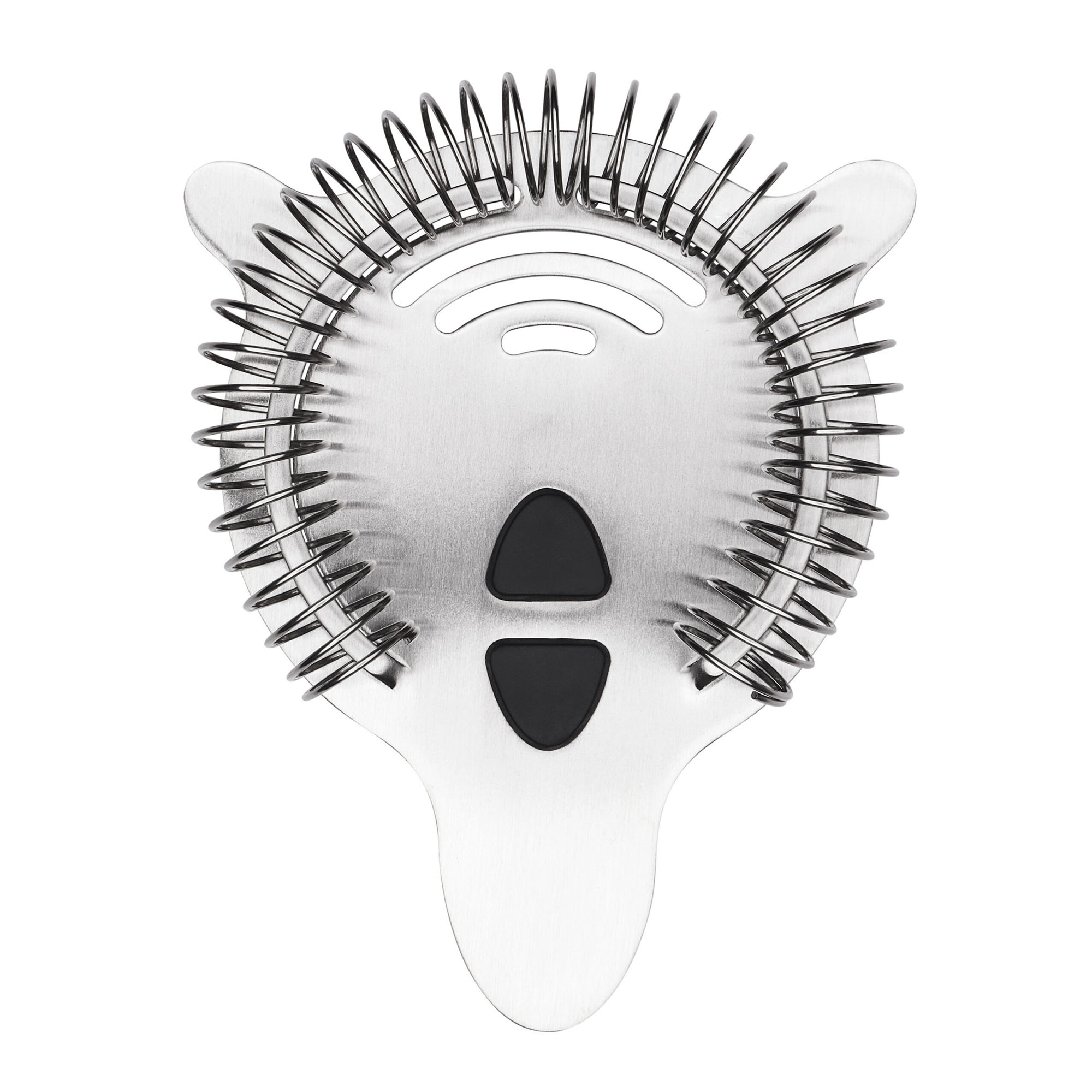 Gemaakt van elegant en duurzaam roestvrij staal, heeft deze ergonomische cocktailzeef een verhoogde rand die vloeistoffen door de veren direct in het glas leidt, waardoor morsen wordt voorkomen.