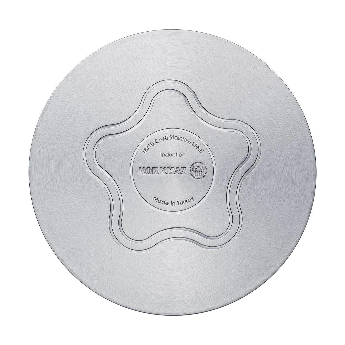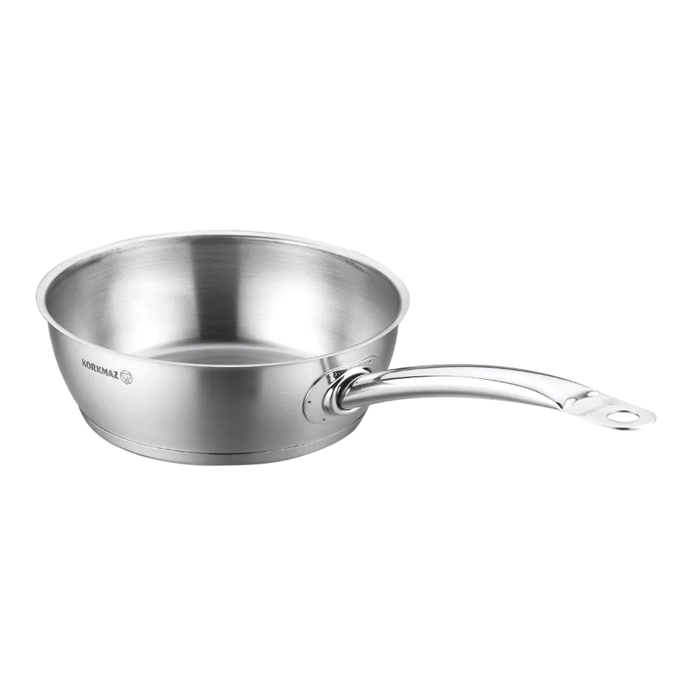 Sauteerpan van roestvrij staal 18/10 Cr-Ni, met een diameter van 20 cm, hoogte van 7 cm en een inhoud van 2 L, geproduceerd door Korkmaz.