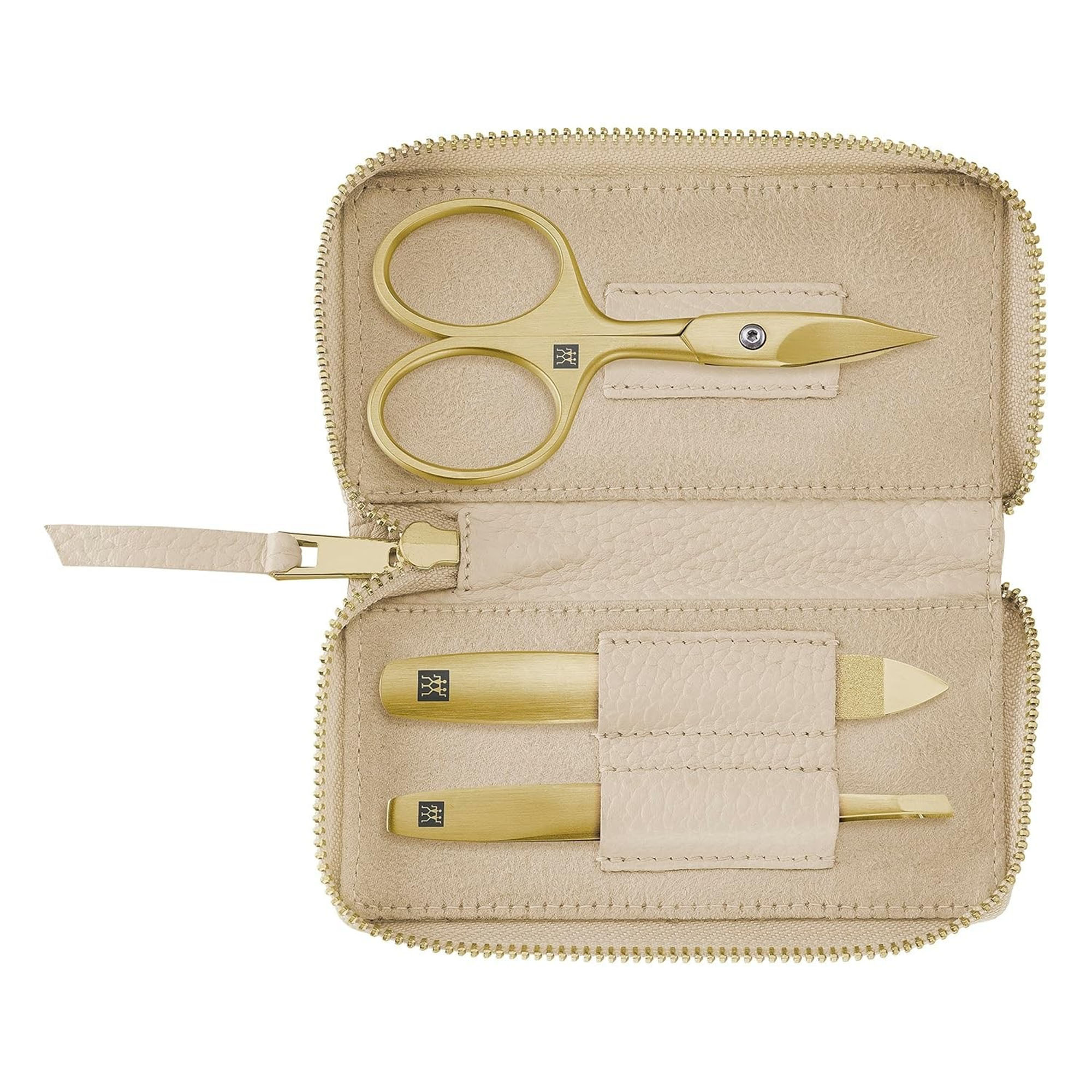 Manikyrsett med 3 deler, produsert av Zwilling, laget av matt satengbehandlet rustfritt stål med innovativt PVD-belegg.