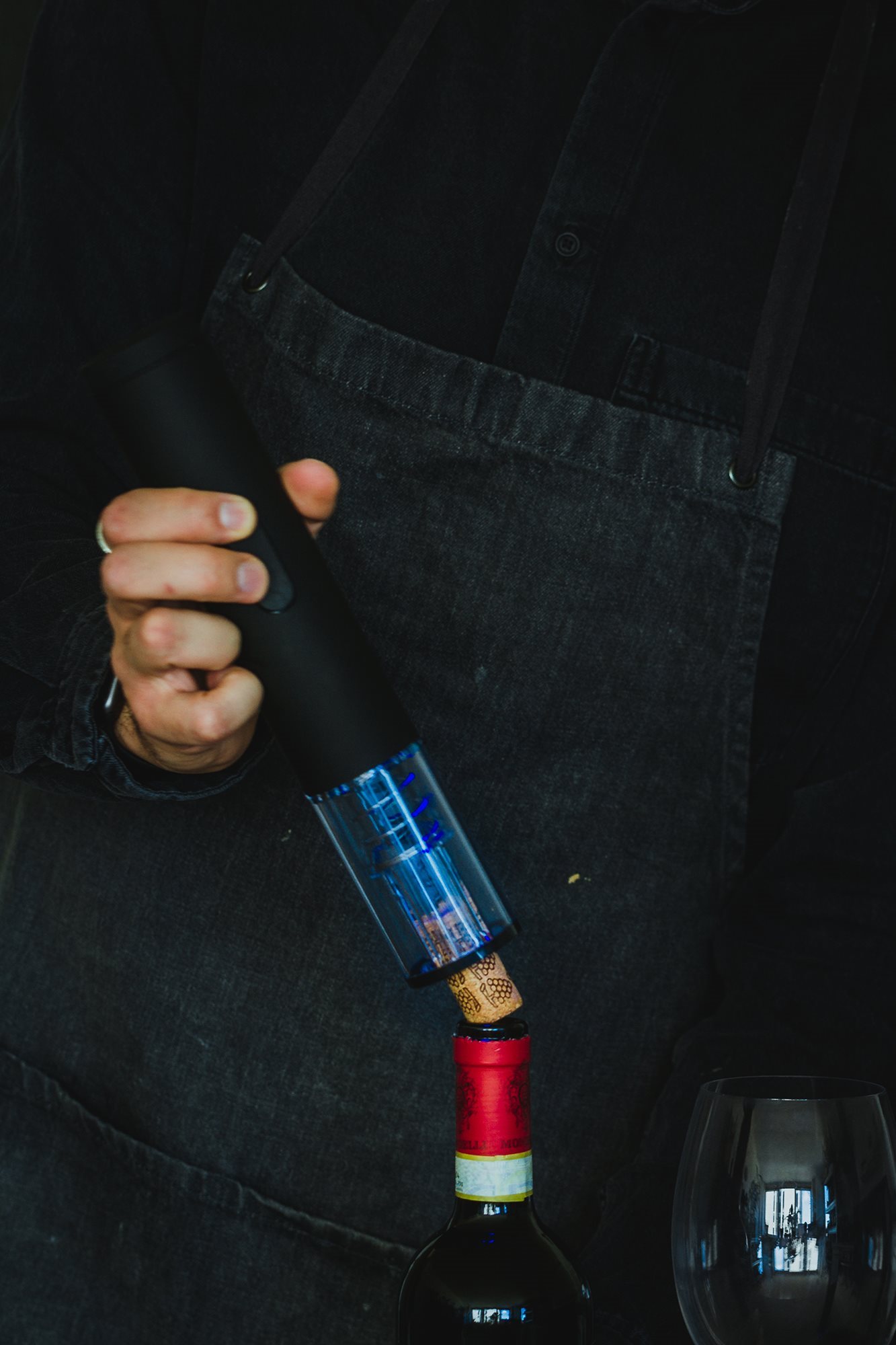 Myk og fin å ta på, med en enkel bevegelse, åpner korketrekkeren nøyaktig et ubegrenset antall flasker, så lenge den har de 4 AA-batteriene den trenger for å fungere (batteriene er ikke inkludert).