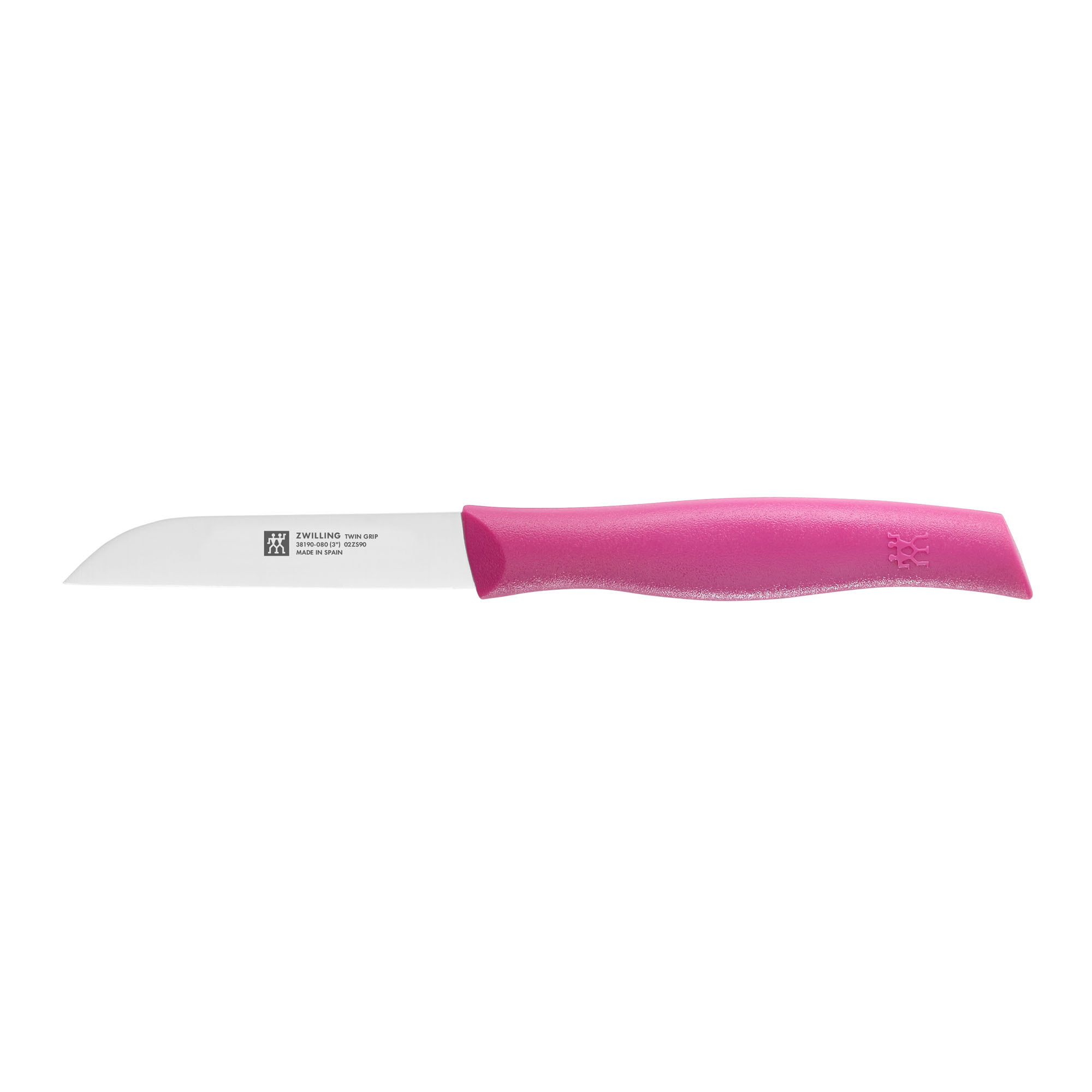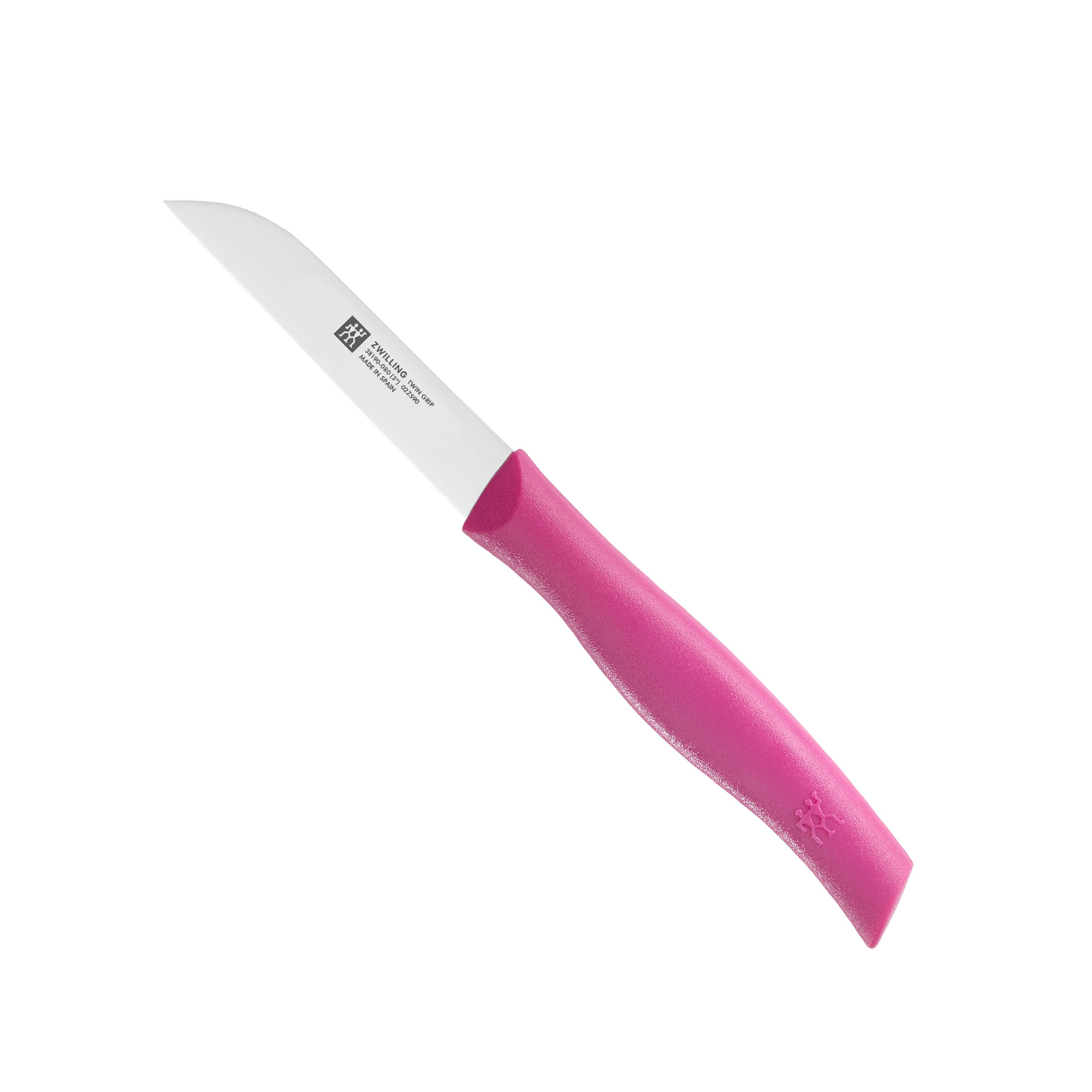 Grønnsaks- og fruktskrellkniv, produsert av Zwilling, med et 8 cm blad laget av spesielt rustfritt stål, motstandsdyktig mot korrosjon og støt.