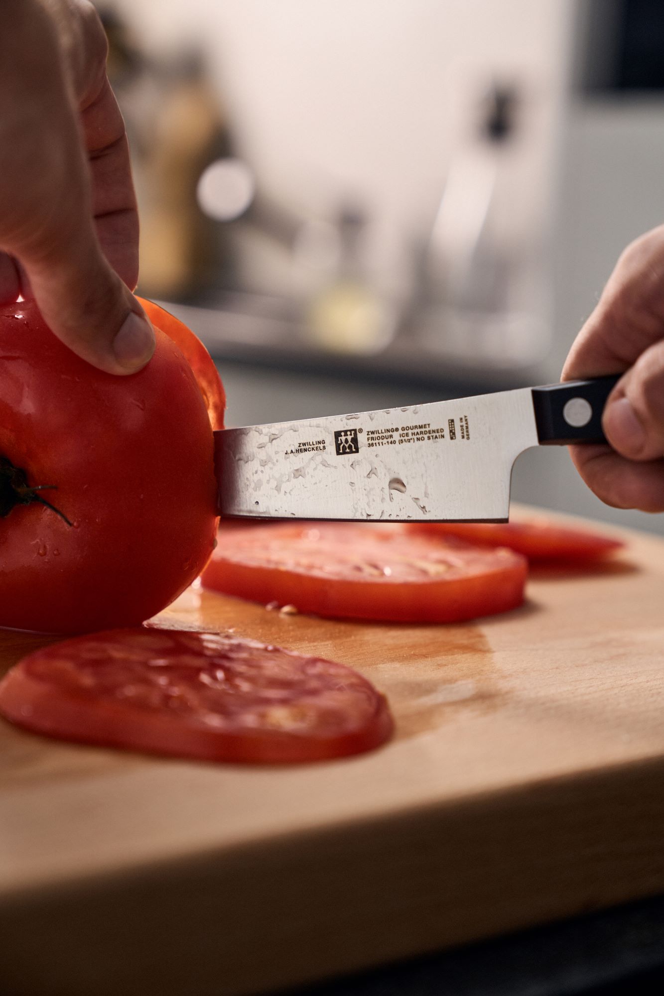 Kokkekniv, bladlengde 14 cm, laget av spesielt rustfritt stål, som gjør den solid, motstandsdyktig mot korrosjon og støt, men samtidig fleksibel, Zwilling -merket