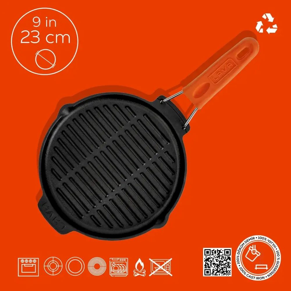 Grillpanne, Lava-merke, diameter på 23 cm, laget av støpejern.