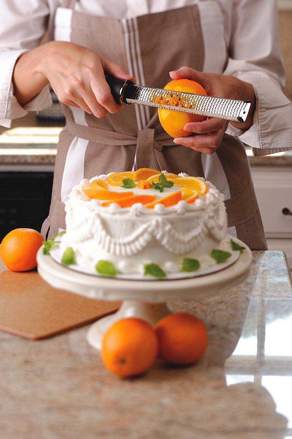 Produkt idealnie nadaje się do tarcia skórki cytrusów, takich jak: cytryna, pomarańcza, grejpfrut, limonka itp., a także do tarcia twardych serów, takich jak parmezan, pecorino romano czy asiago. Z łatwością zetrze również przyprawy, takie jak gałka muszkatołowa, cynamon, a nawet czosnek czy imbir. Klienci polecają również używanie tarki do usuwania przypalonych brzegów ciastek lub chleba.