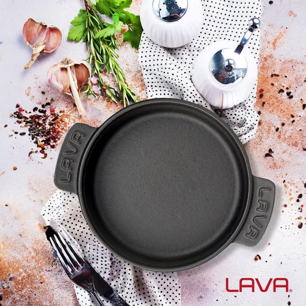 Mini rondelek okrągły, produkcji firmy Lava, średnica 13 cm, pojemność 0,36 l, wykonany z żeliwa.