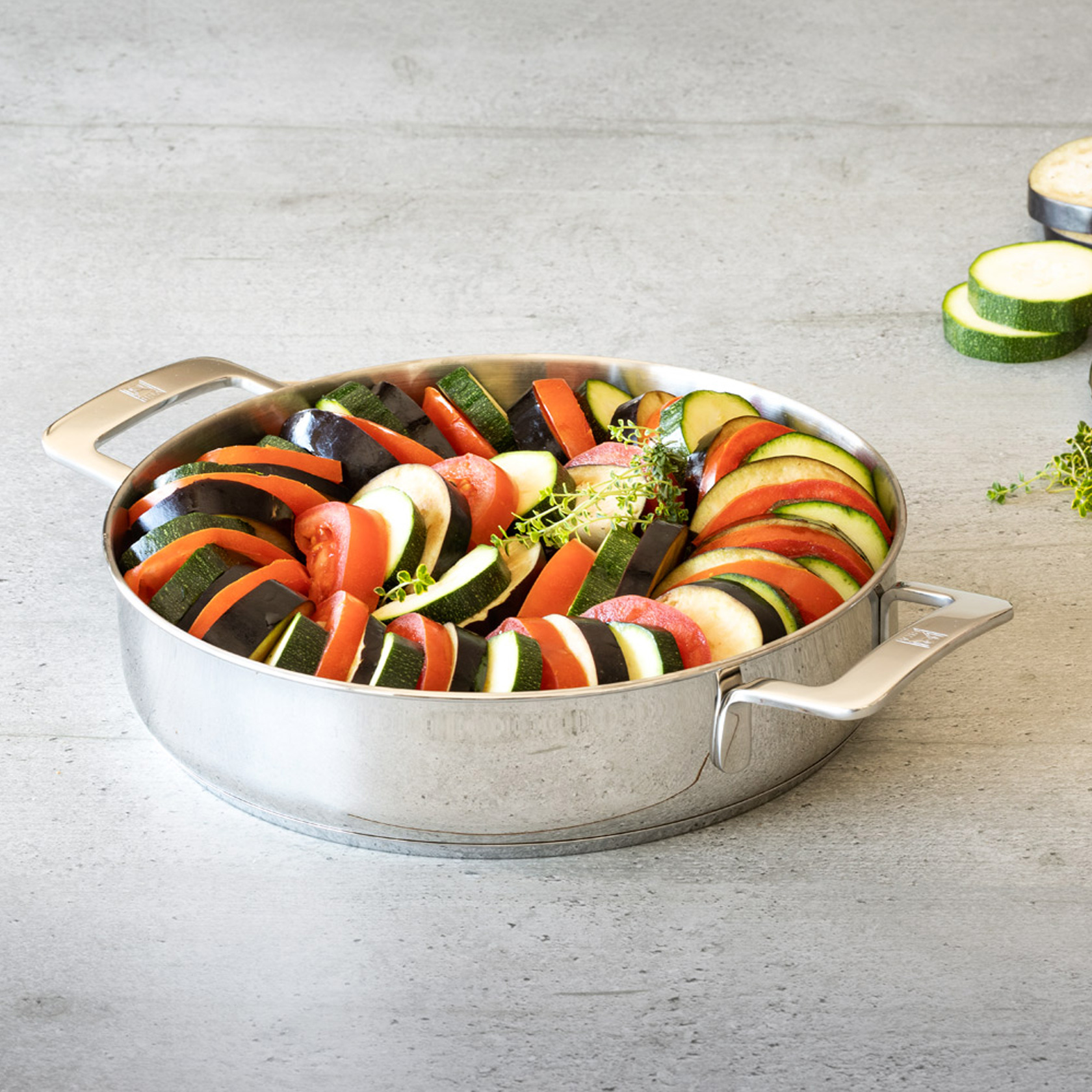 Naczynie żaroodporne Signature o płytkiej formie wyróżnia się eleganckim i niezwykle funkcjonalnym designem. Polerowane wykończenie i ergonomiczne uchwyty zapewniają wygodę użytkowania.