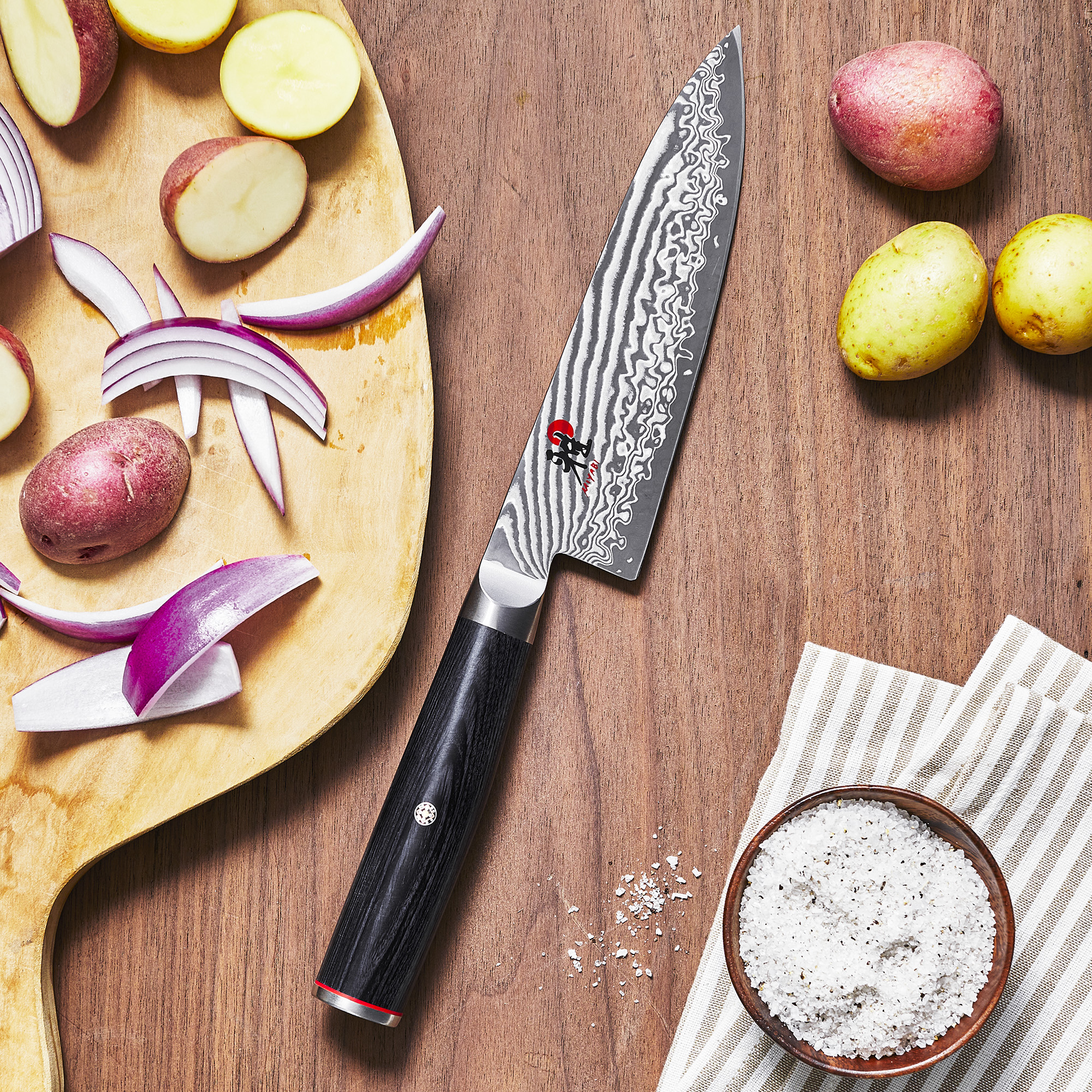Nóż Gyutoh - japoński nóż szefa kuchni - produkowany przez Miyabi, z ostrzem 16 cm, odporny na wstrząsy.