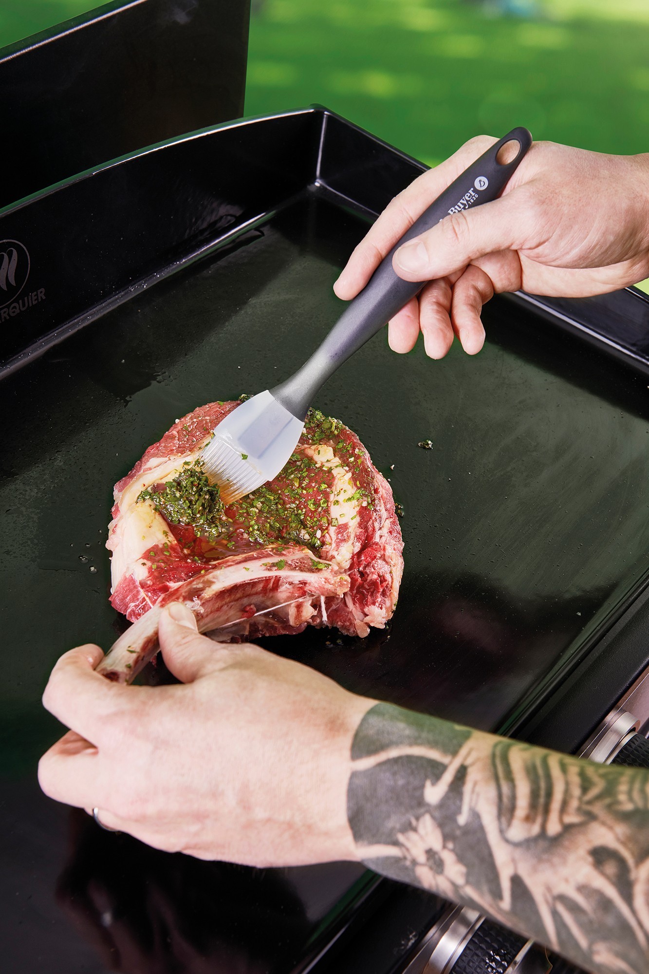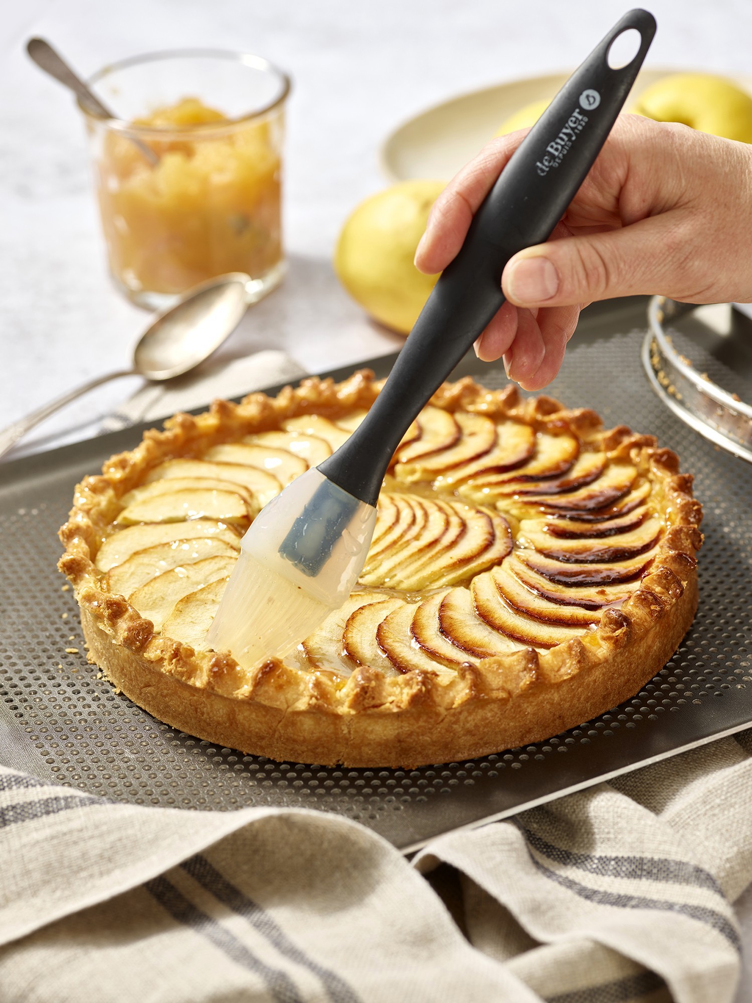 Pędzel do ciasta, długość 25 cm, wykonany z silikonu z plastikową rączką, produkowany przez de Buyer.