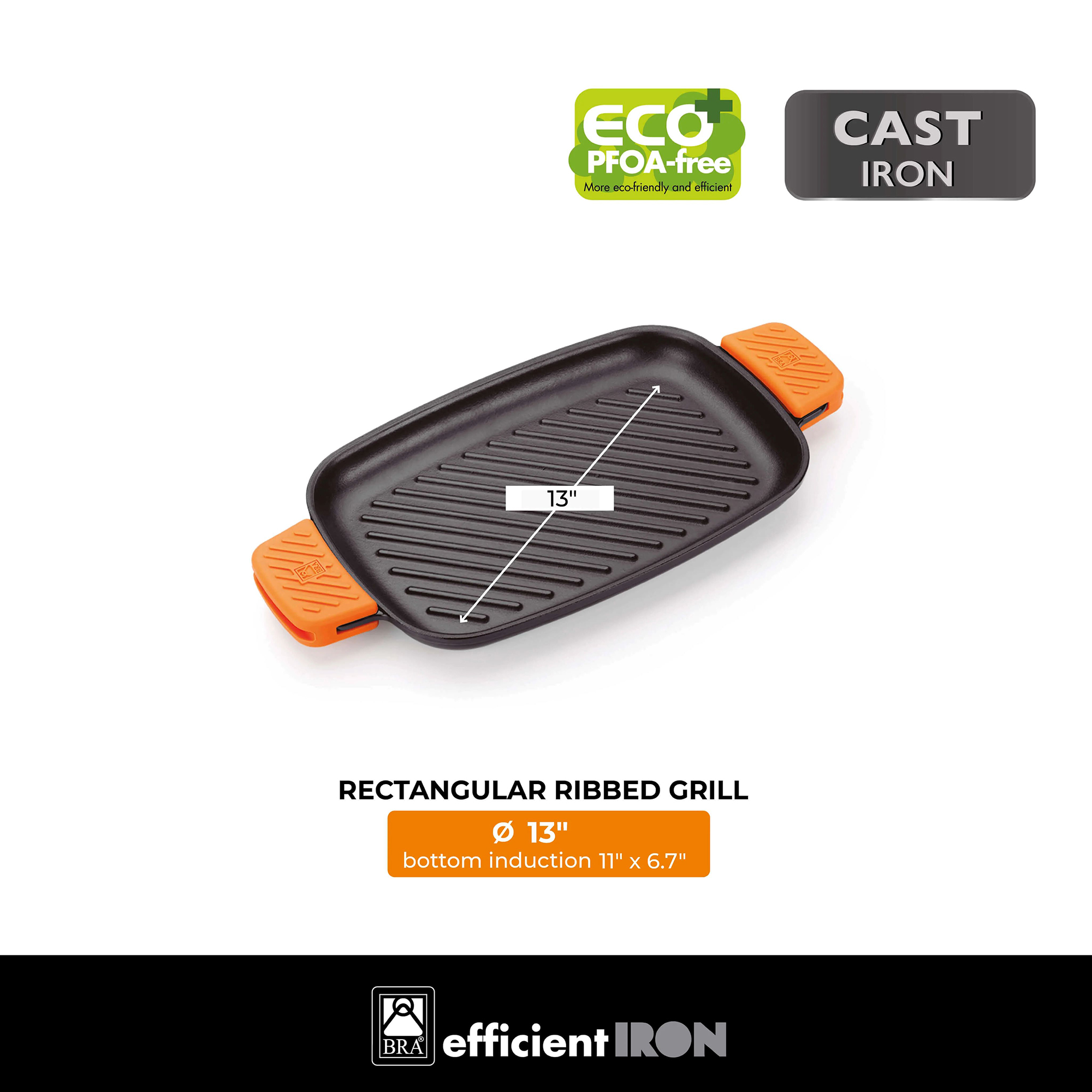 Efficient Iron taca grillowa o wymiarach powierzchni do grillowania 33 x 22 cm, wykonana z emaliowanego żeliwa, marka BRA