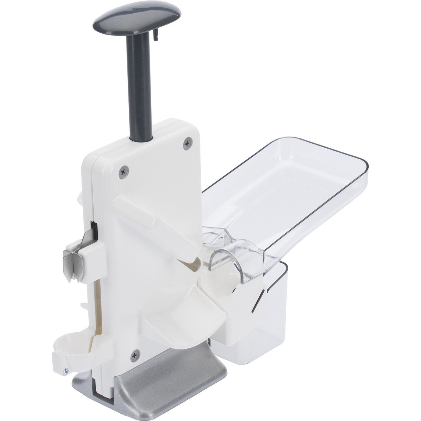 Possui mecanismo especial para remoção rápida de caroços por perfuração (pode remover 2 caroços simultaneamente). Assim, pode processar mais de 20 kg por hora .