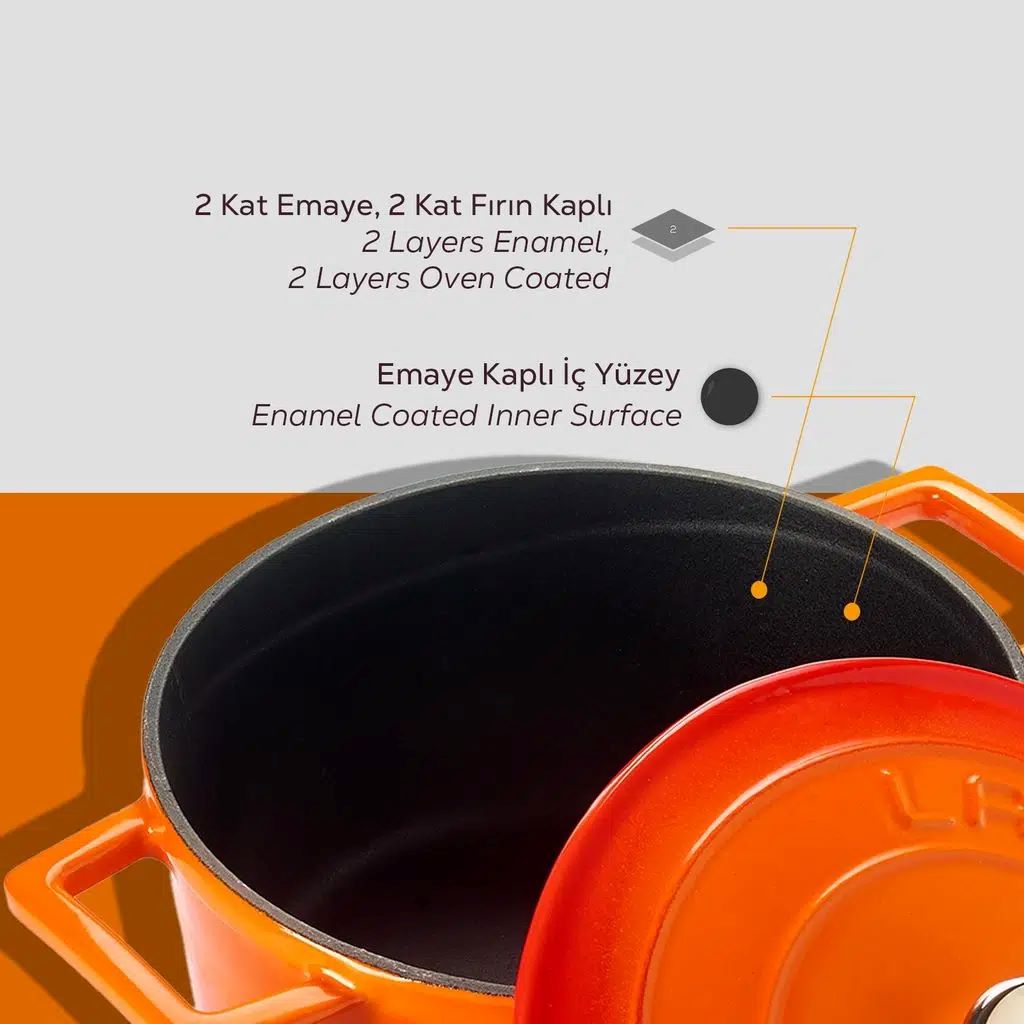 O esmalte vítreo, material utilizado para o acabamento externo das panelas de ferro fundido LAVA, é obtido por pulverização de pó de vidro a temperaturas de 750 - 850°C. O pó de vidro adere à superfície da panela criando uma camada protetora que também ajuda a distribuir o calor de forma ideal.