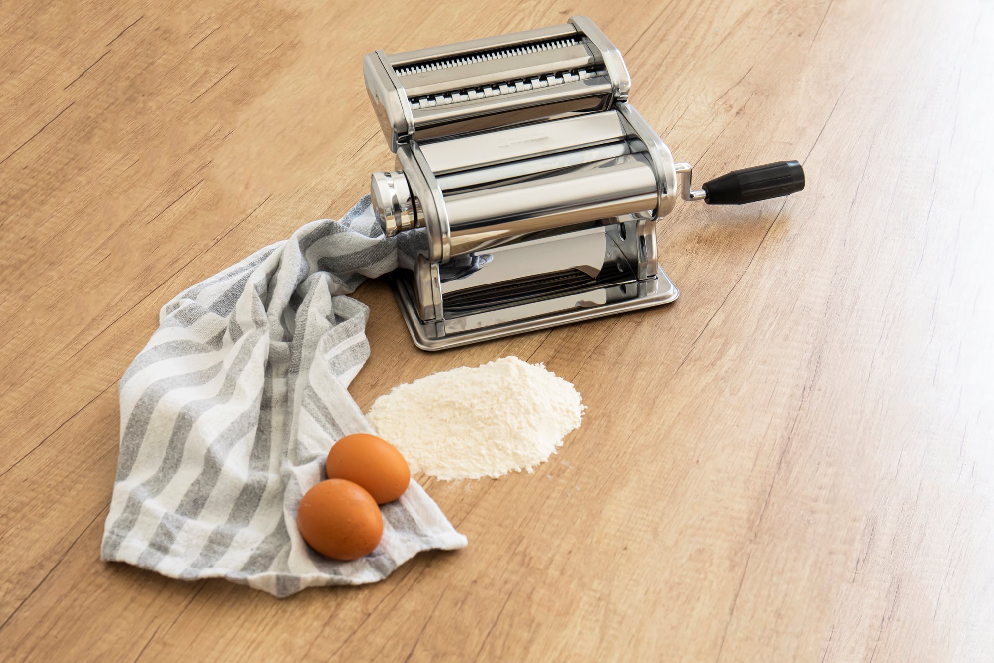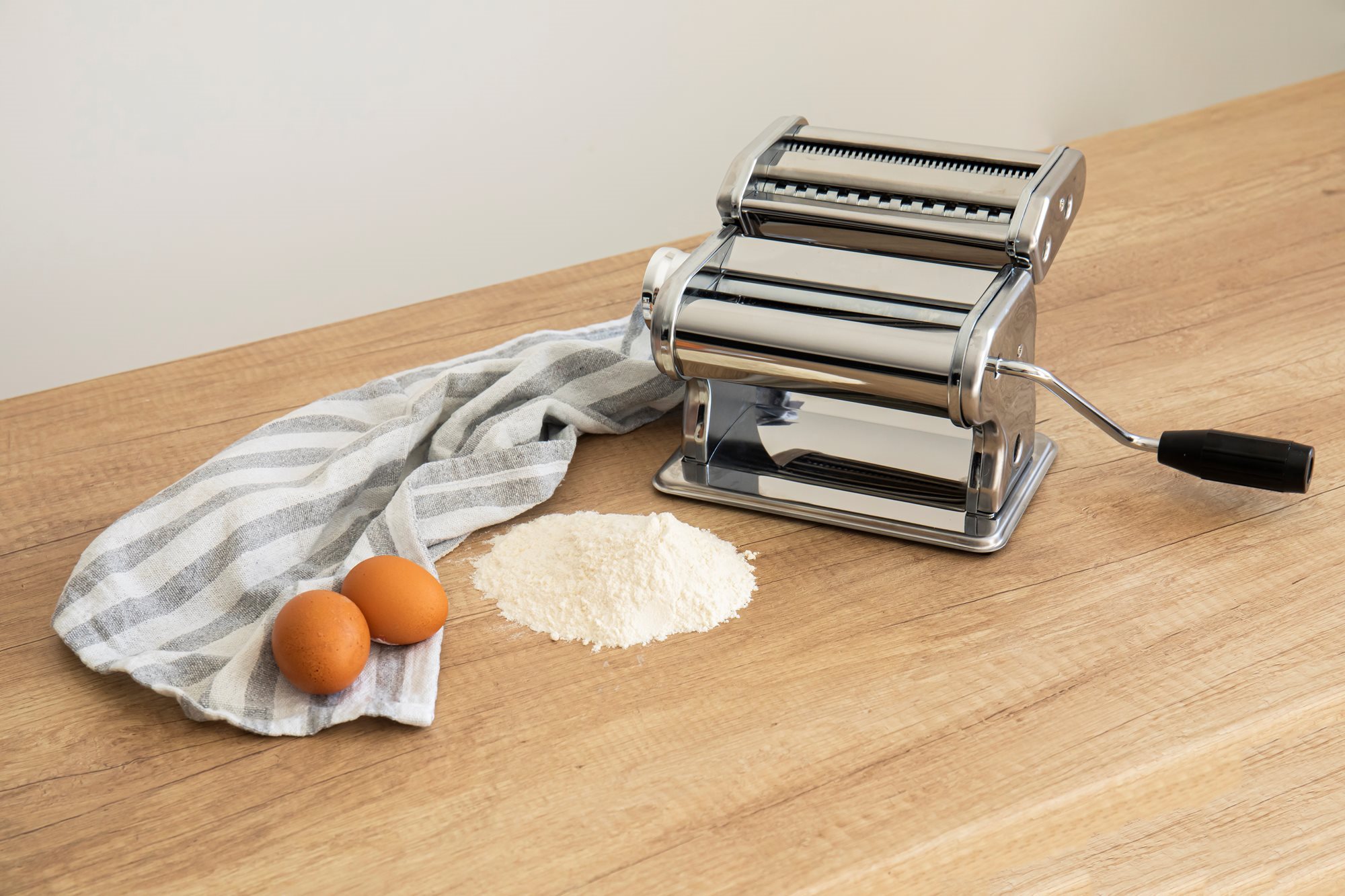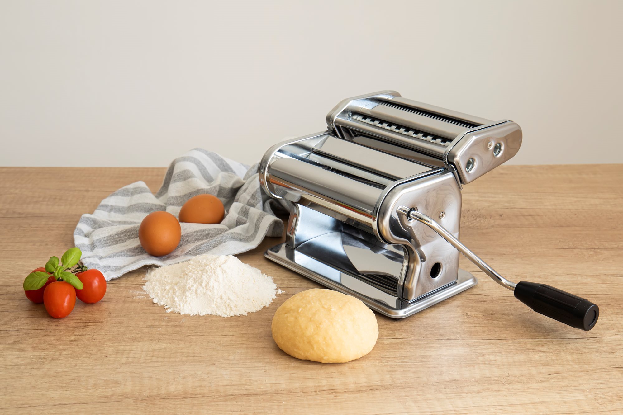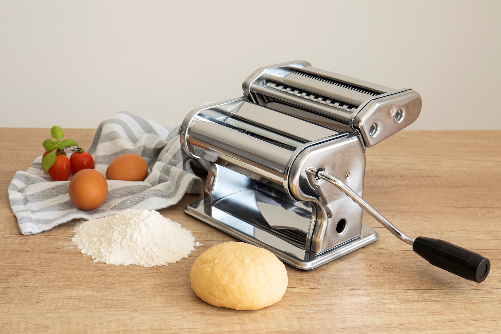 Rola pentru prepararea foii de paste creaza o foaie cu o latime de 150 mm. Masina prezinta reglaje pentru obtinerea aluatului in 9 grosimi diferite.