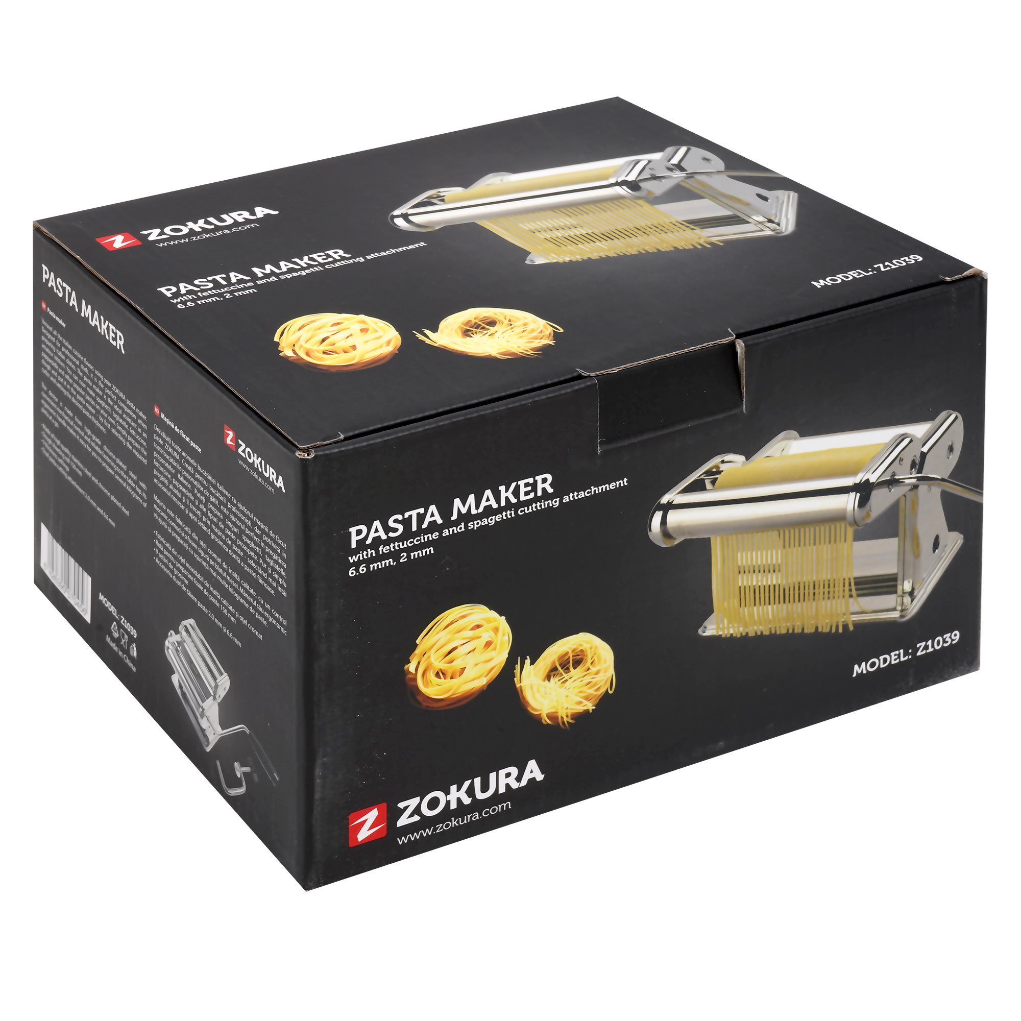 Masina de facut paste marca Zokura este usor de utilizat si rezistenta la folosirea intensiva, datorita modului in care a fost gandita si a materialului din care este fabricata (otel cromat). De asemenea, masina va garanteaza un control mecanic convenabil si o fixare sigura pe blatul de lucru.