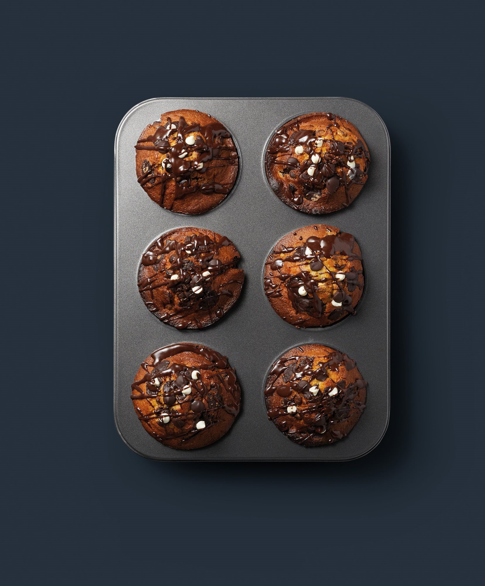 Forma este ideala pentru prepararea brioselor, mini-placintelor si a altor prajituri, datorita stratului antiadeziv, care permite scoaterea usoara a preparatului din forma.