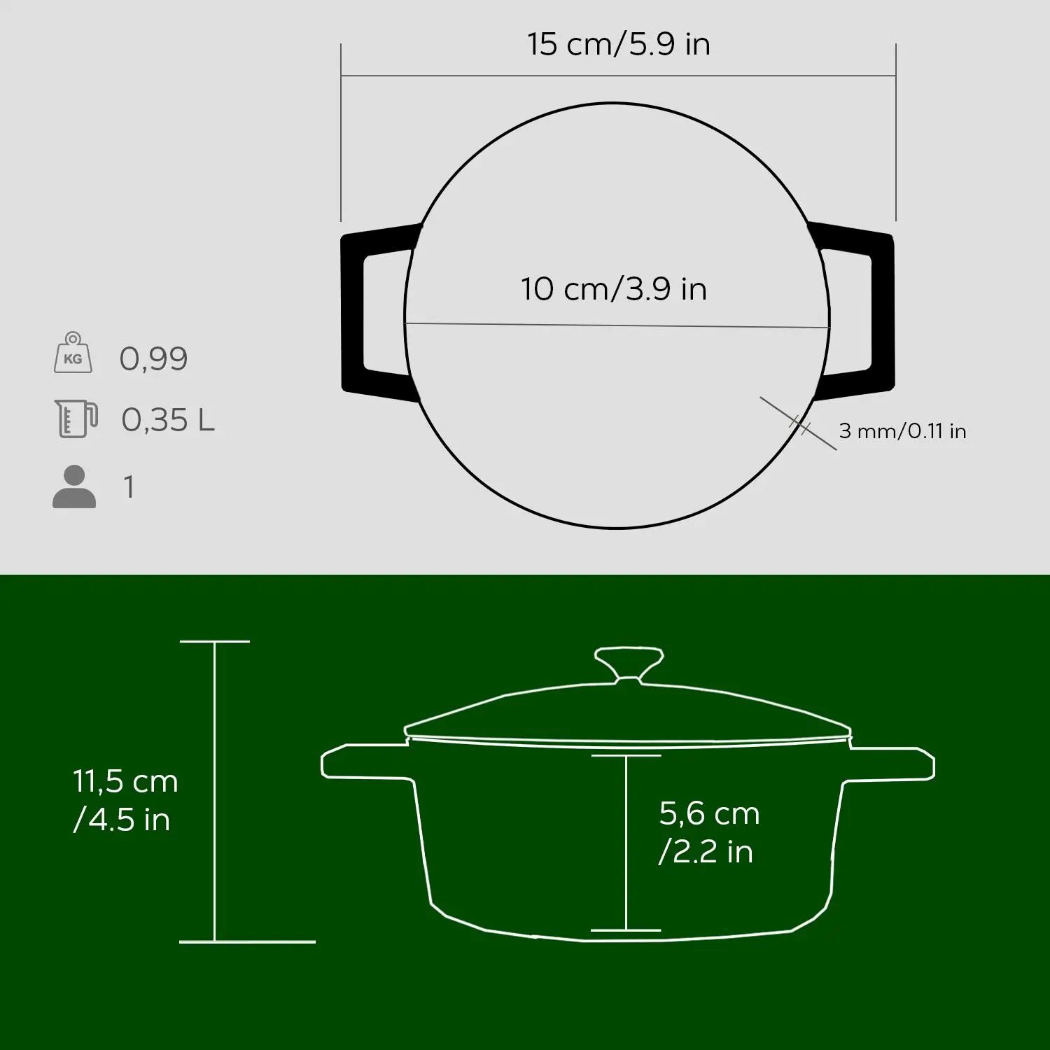 Толщина дна составляет 3,5 мм , что позволяет использовать посуду Lava на всех типах плит, включая индукционные.
