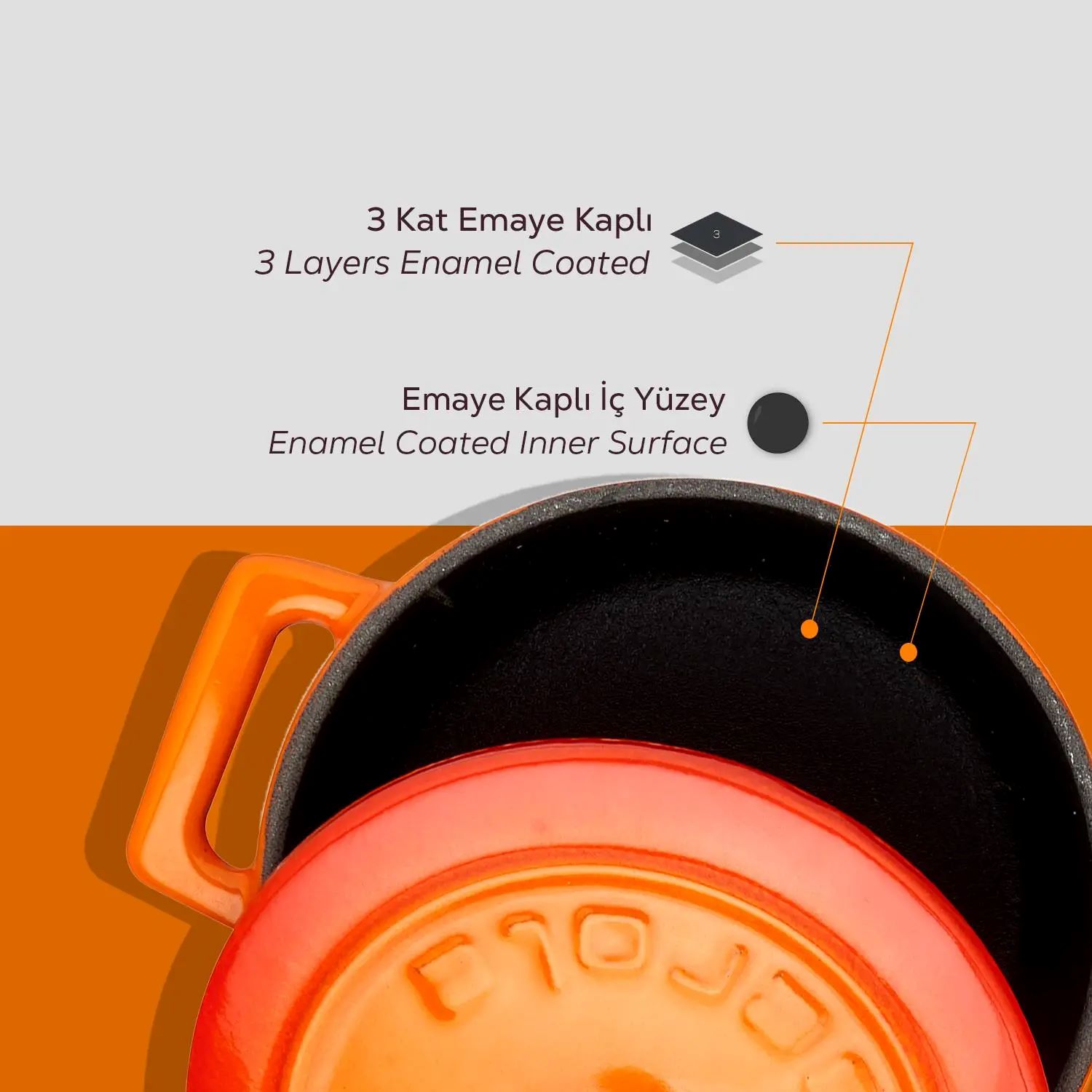 Стекловидная эмаль, материал, используемый для внешней отделки чугунной посуды Lava , получается путем напыления стеклянного порошка при температуре 750 - 850°C. Стеклянный порошок прилипает к поверхности кастрюли, создавая защитный слой, который также помогает оптимально распределять тепло.