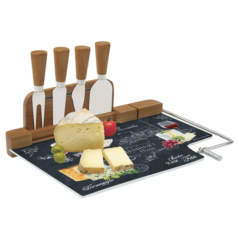 - 4 сырные столовые (1 вилка, 2 шпателя и 1 нож).