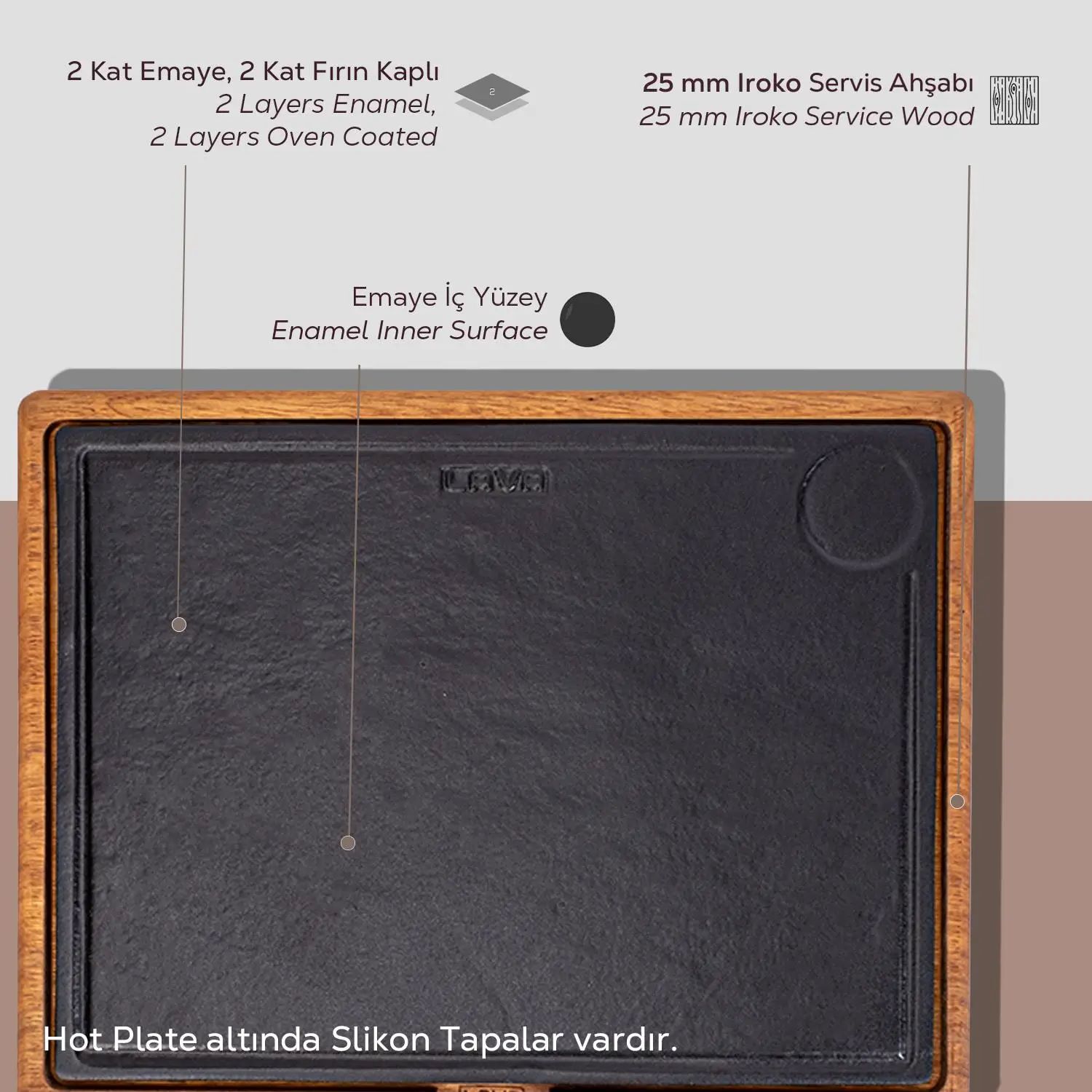Сервировочное блюдо из дерева iroko и сервировочное блюдо из чугуна, марка Lava .