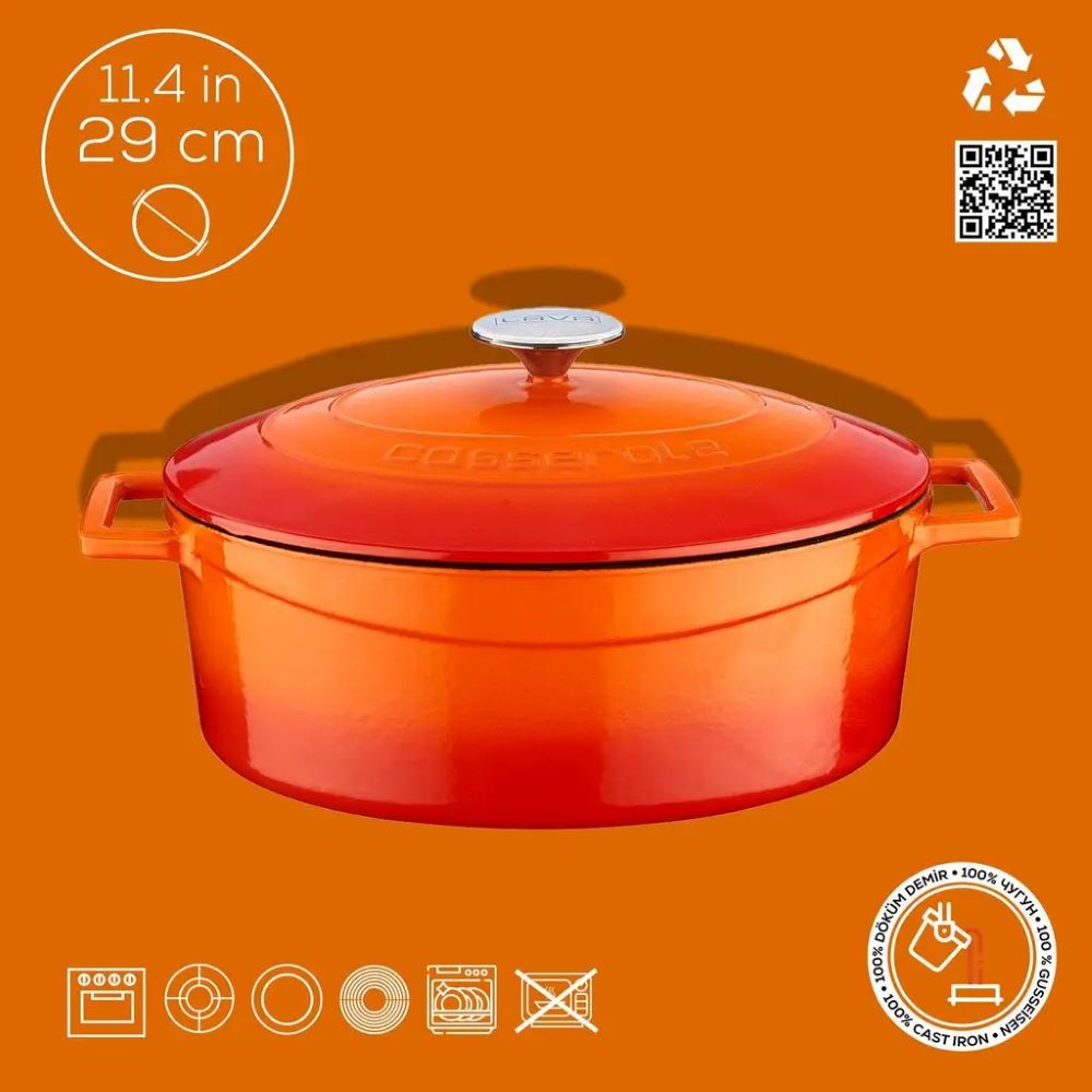 Овальная кастрюля, чугунная, 29 см/4,67 л, "Folk", цвет оранжевый - LAVA