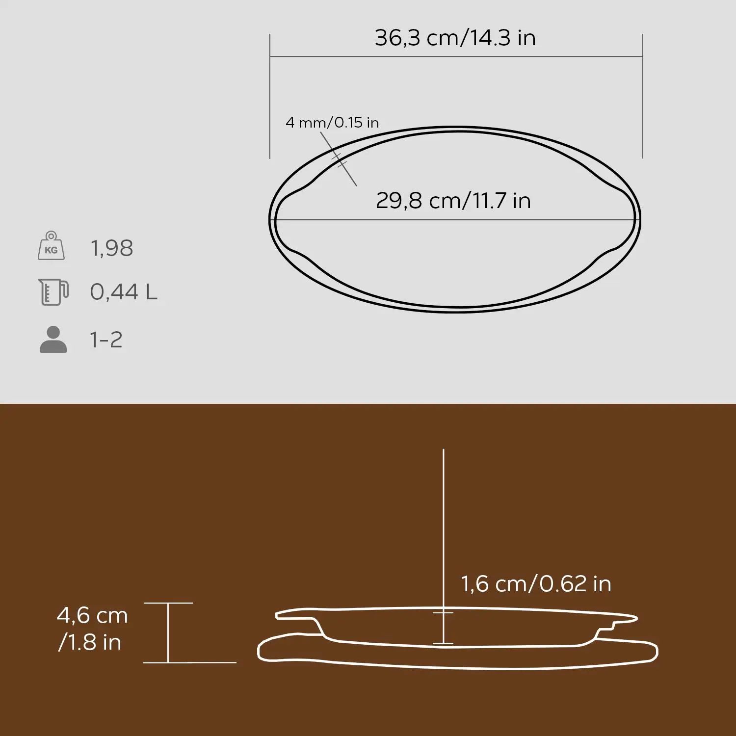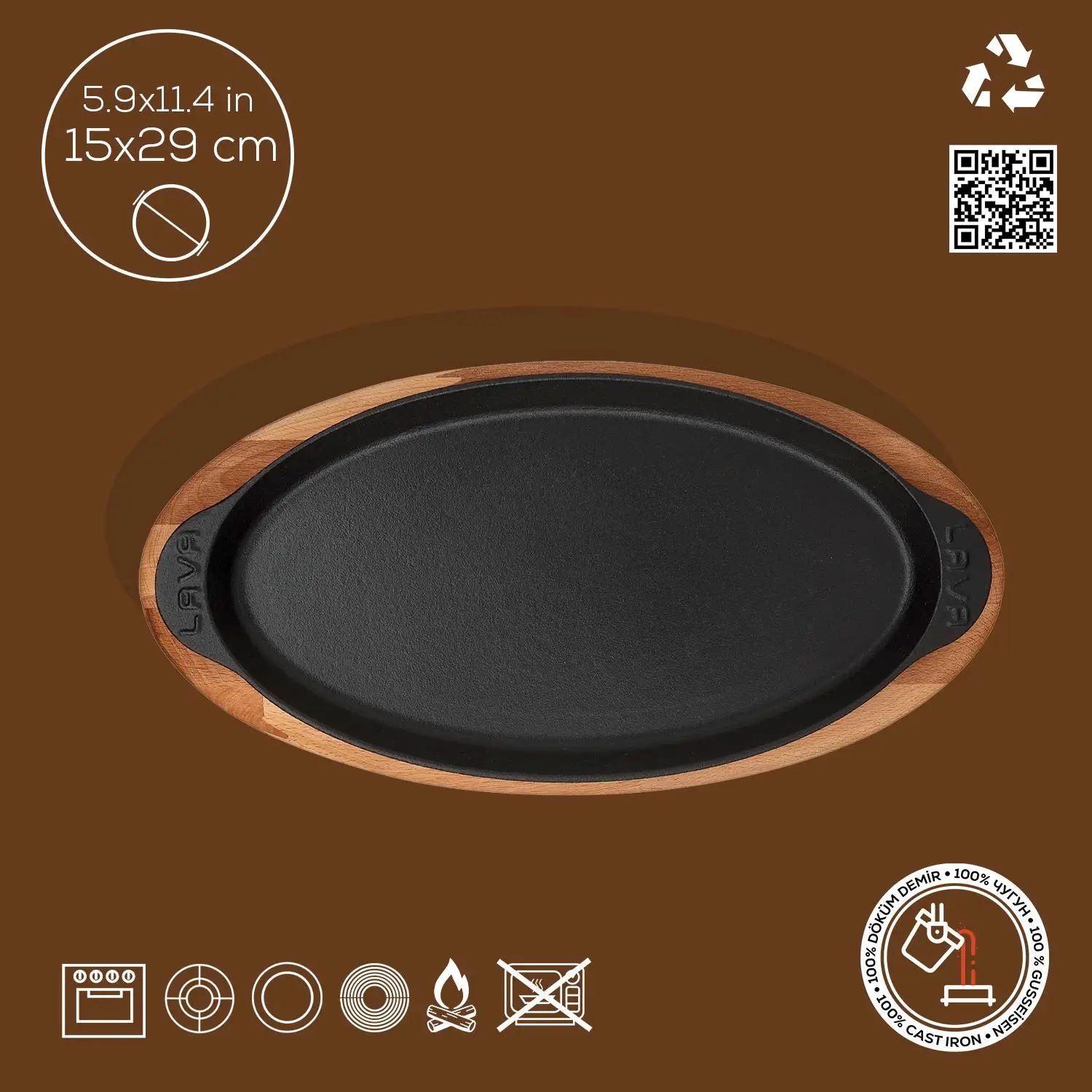 Dno podnosu na ryby má hrúbku 3,5 mm, vďaka čomu je riad LAVA použiteľný na všetkých typoch varných dosiek vrátane indukčných.
