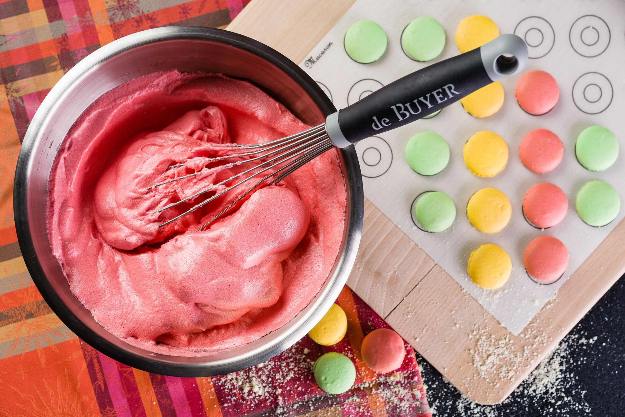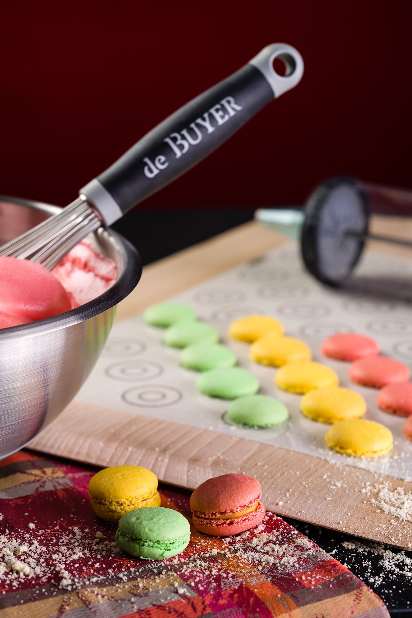 Metla, vyrobená spoločnosťou de Buyer, vyrobená z nehrdzavejúcej ocele s polypropylénovou rukoväťou.