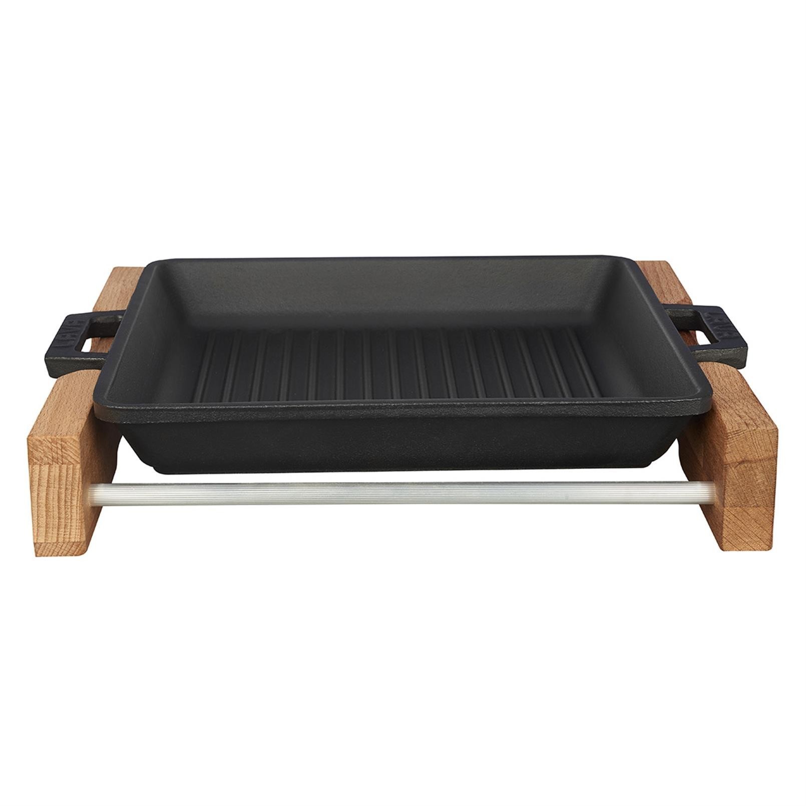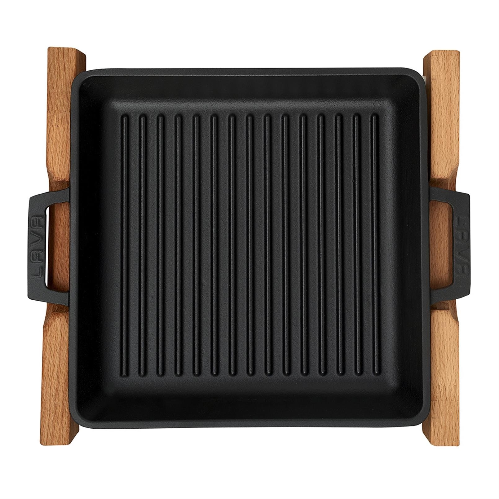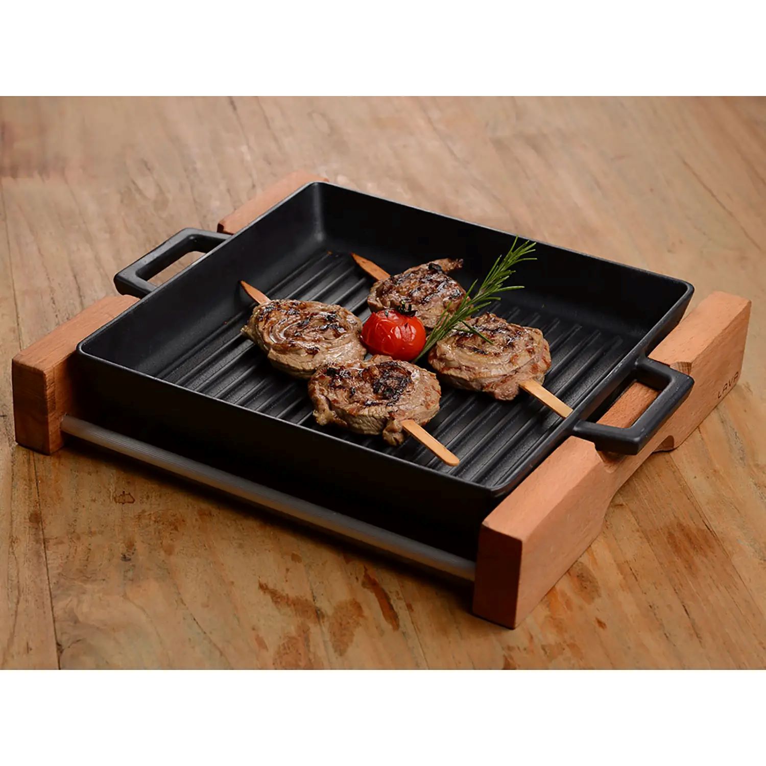 Grilovací plech s dreveným stojanom - značka Lava - rozmery 26 x 26 cm, vyrobený z liatiny.