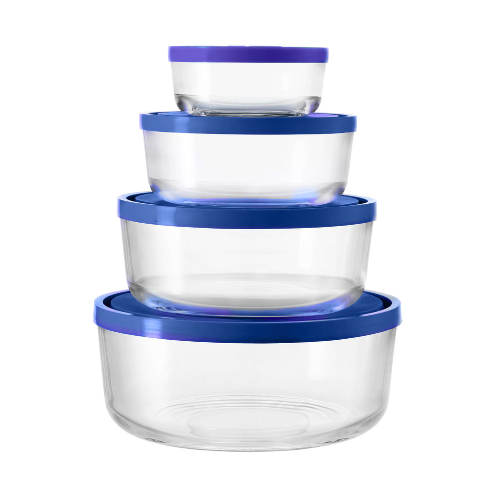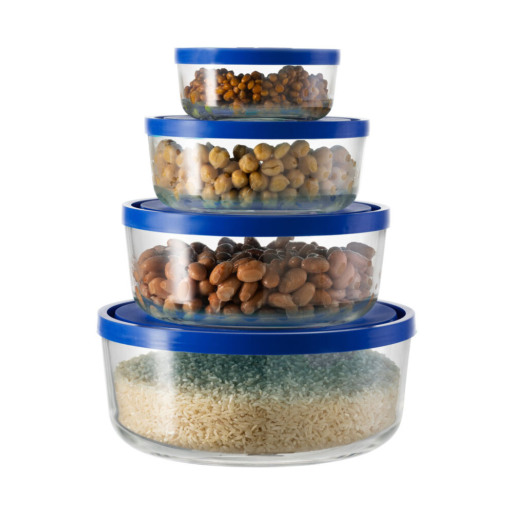 Sada 4 okrúhlych nádob "Igloo", s viečkami, vyrobená spoločnosťou Borgonovo, vyrobená v Taliansku, z extra kryštalického skla.