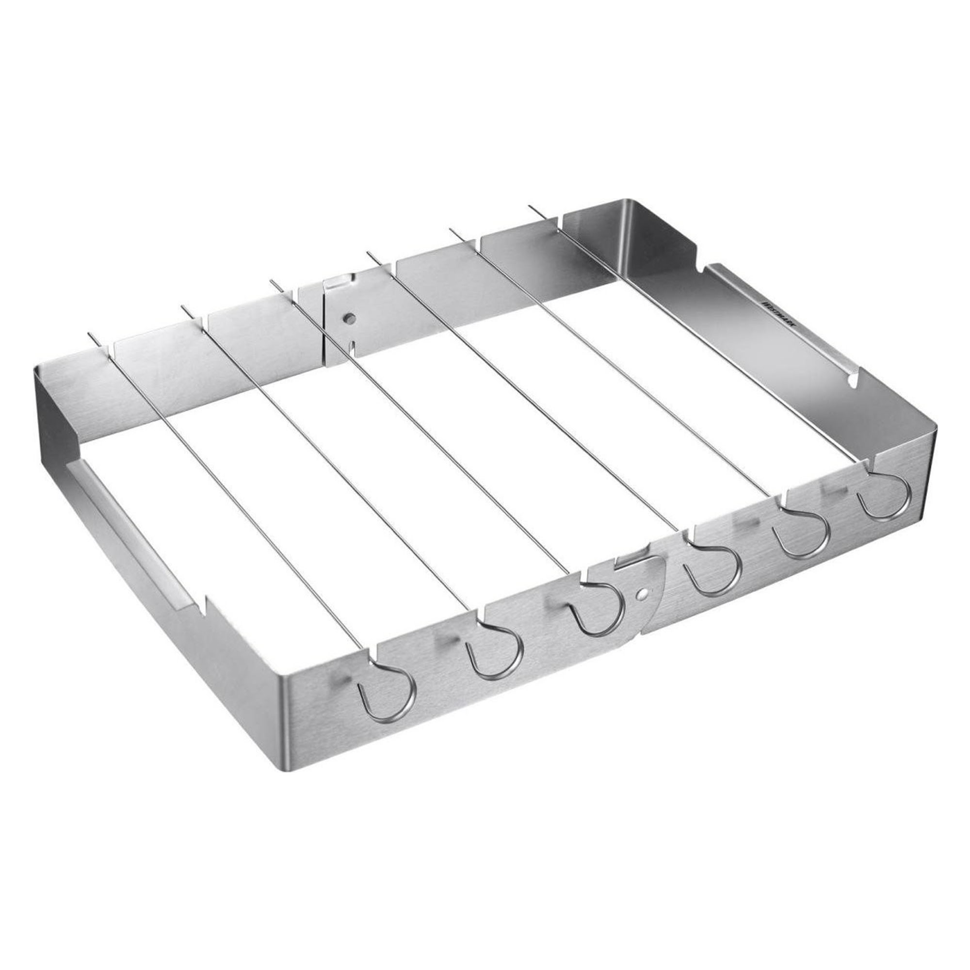 Stojan umožňuje jednoduché otáčanie špízov, takže ich môžete rovnomerne opekať zo všetkých strán. Aby sa zabránilo šmýkaniu, stojan má špeciálne otvory na umiestnenie špízov.