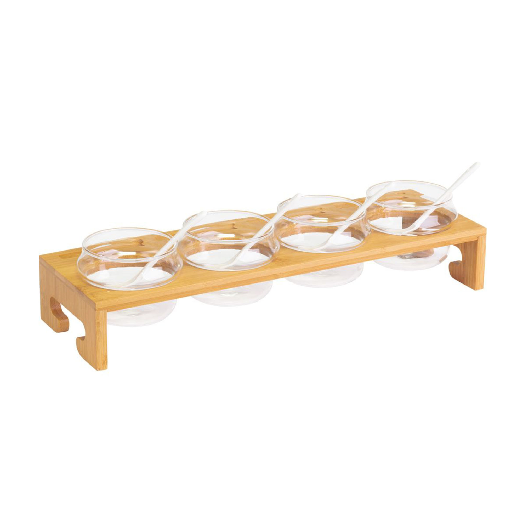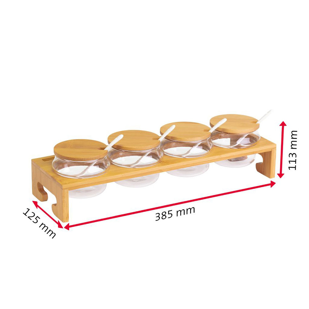 - 4 sklenené nádoby s objemom 200 ml s bambusovými viečkami