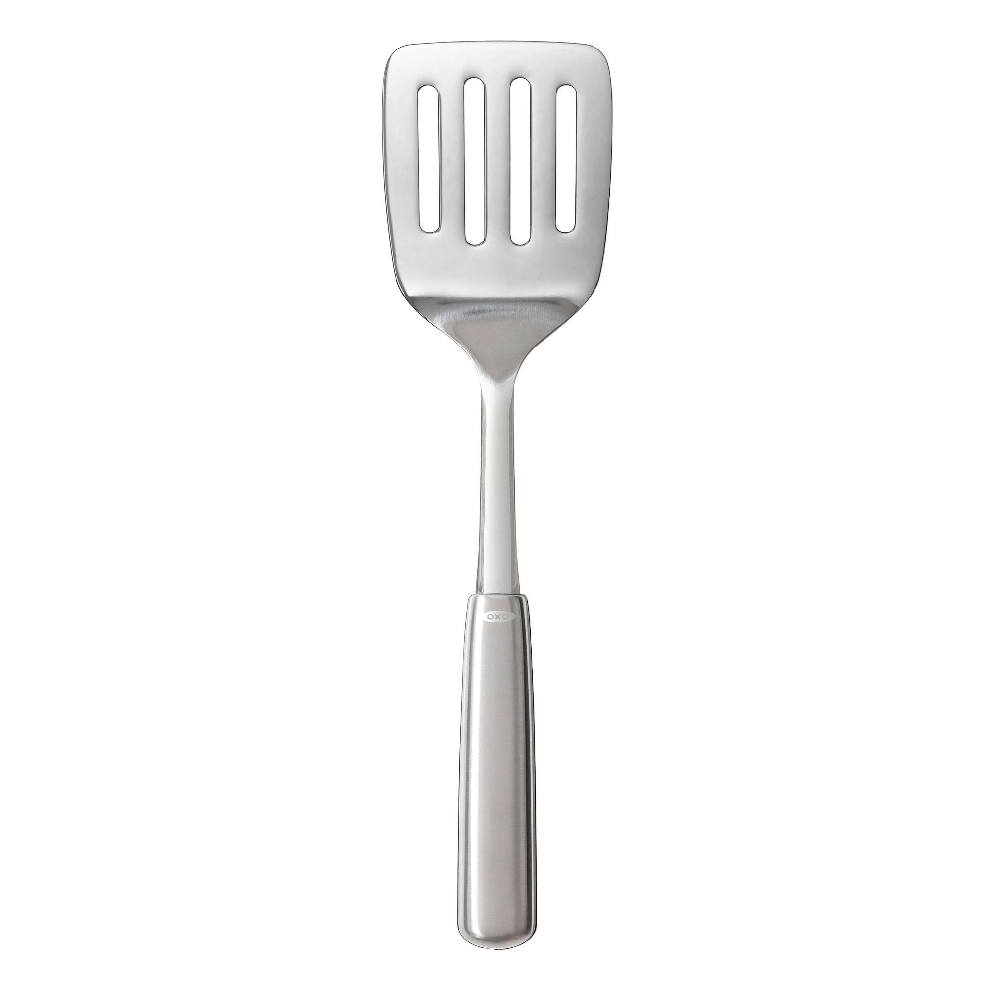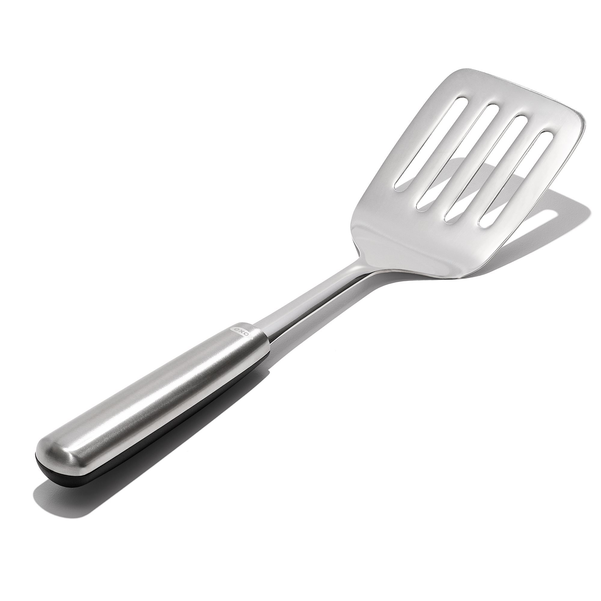 Varná stierka, vyrobená z nehrdzavejúcej ocele, vhodná na otáčanie burgerov, vajec alebo palaciniek, značka OXO Steel