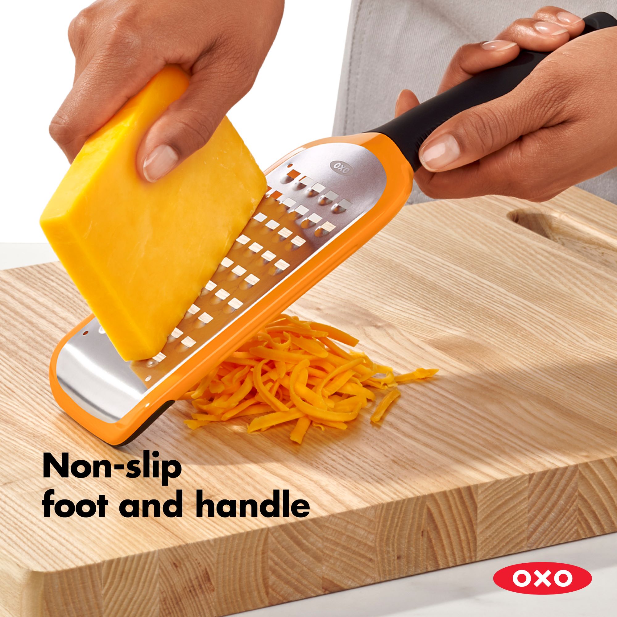 Ta OXO Good Grips groba riba omogoča enostavno ribanje krompirja, polmehkih sirov, bučk, čebule in jabolk. Mehak in udoben ročaj zagotavlja varen oprijem, medtem ko protidrseča noga omogoča dodatni nadzor med uporabo.