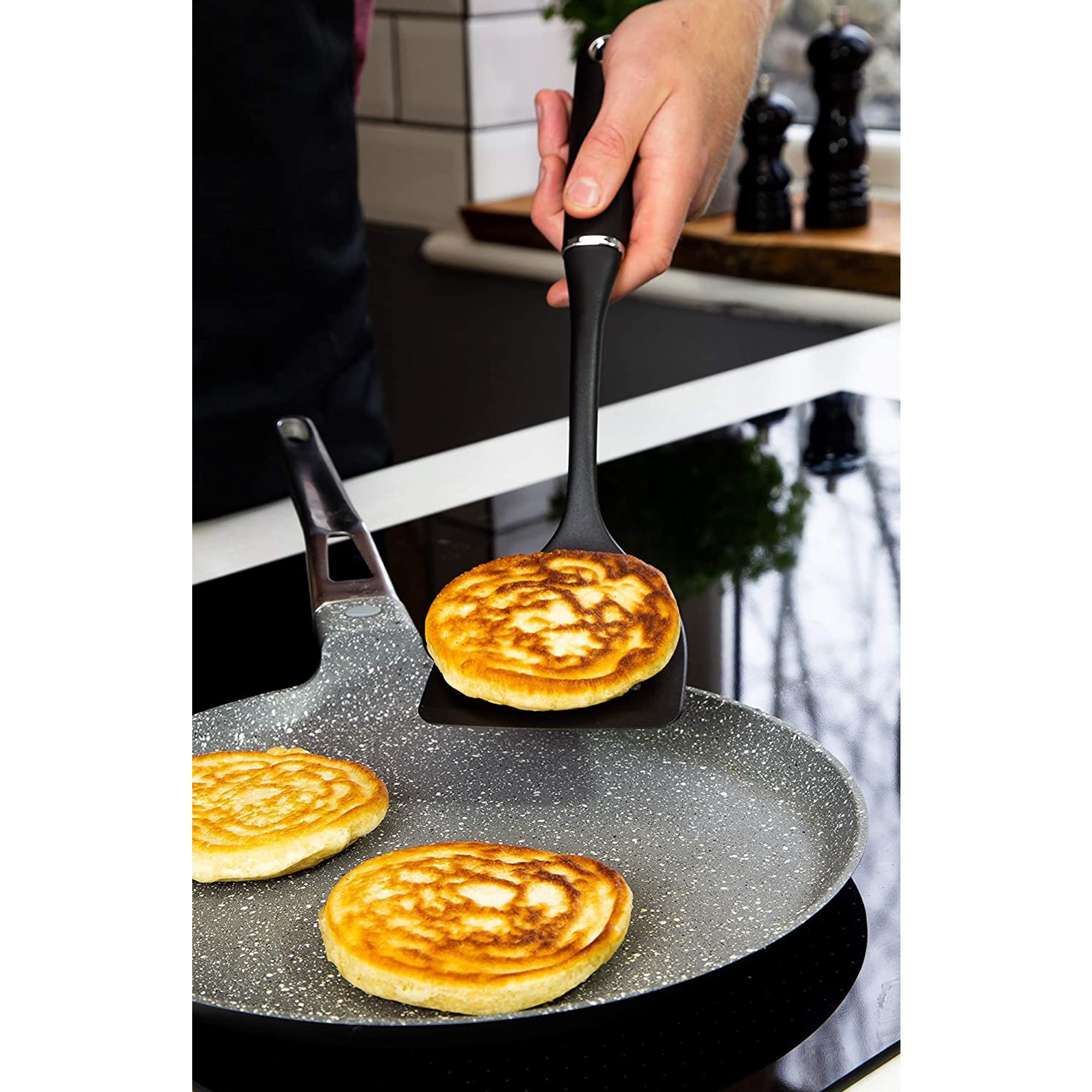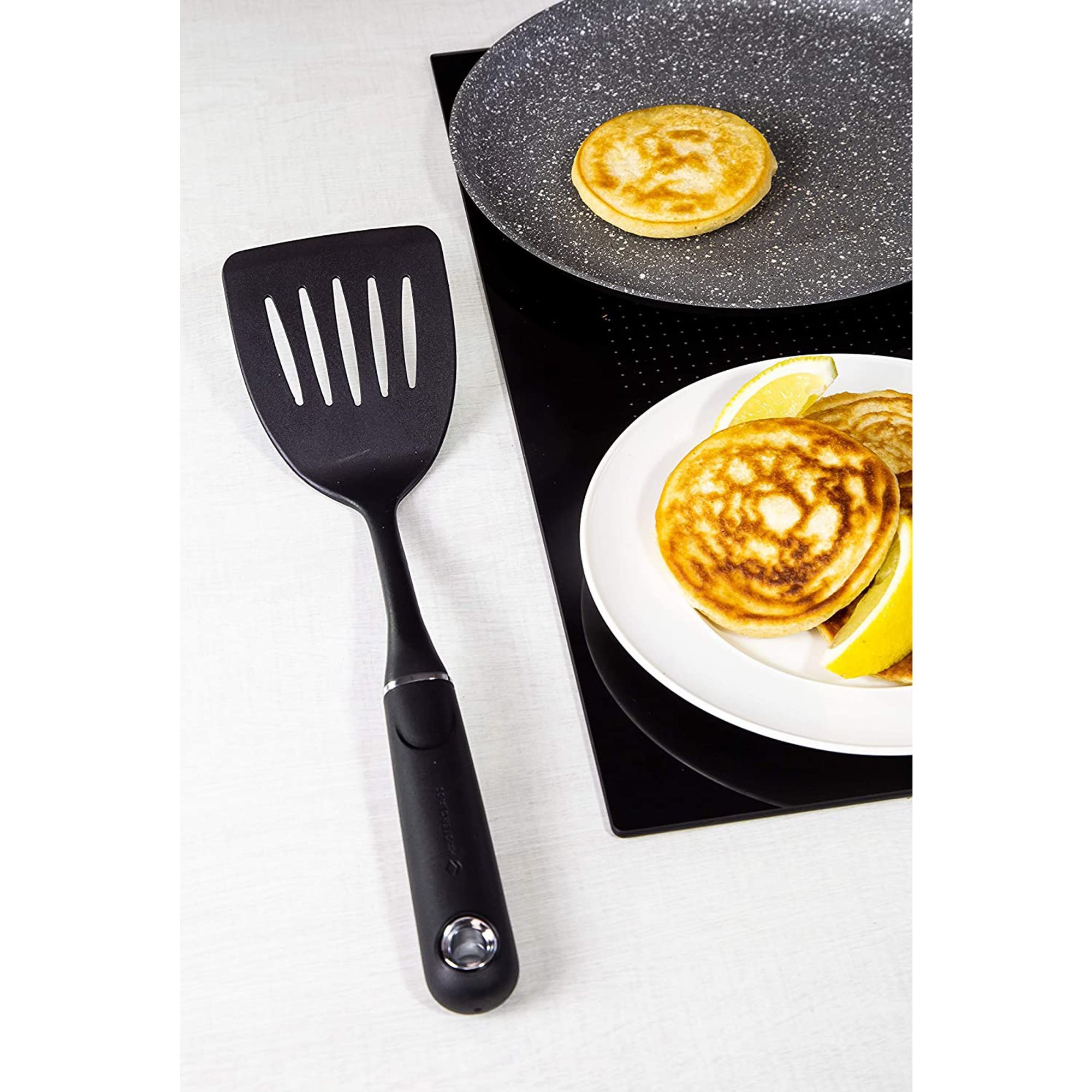 Ta vrhunska lopatica, zasnovana z ergonomskim ročajem in režami, ki omogočajo odtekanje tekočin, je idealna za pripravo burgerjev, palačink, jajc, zrezkov ali rib.