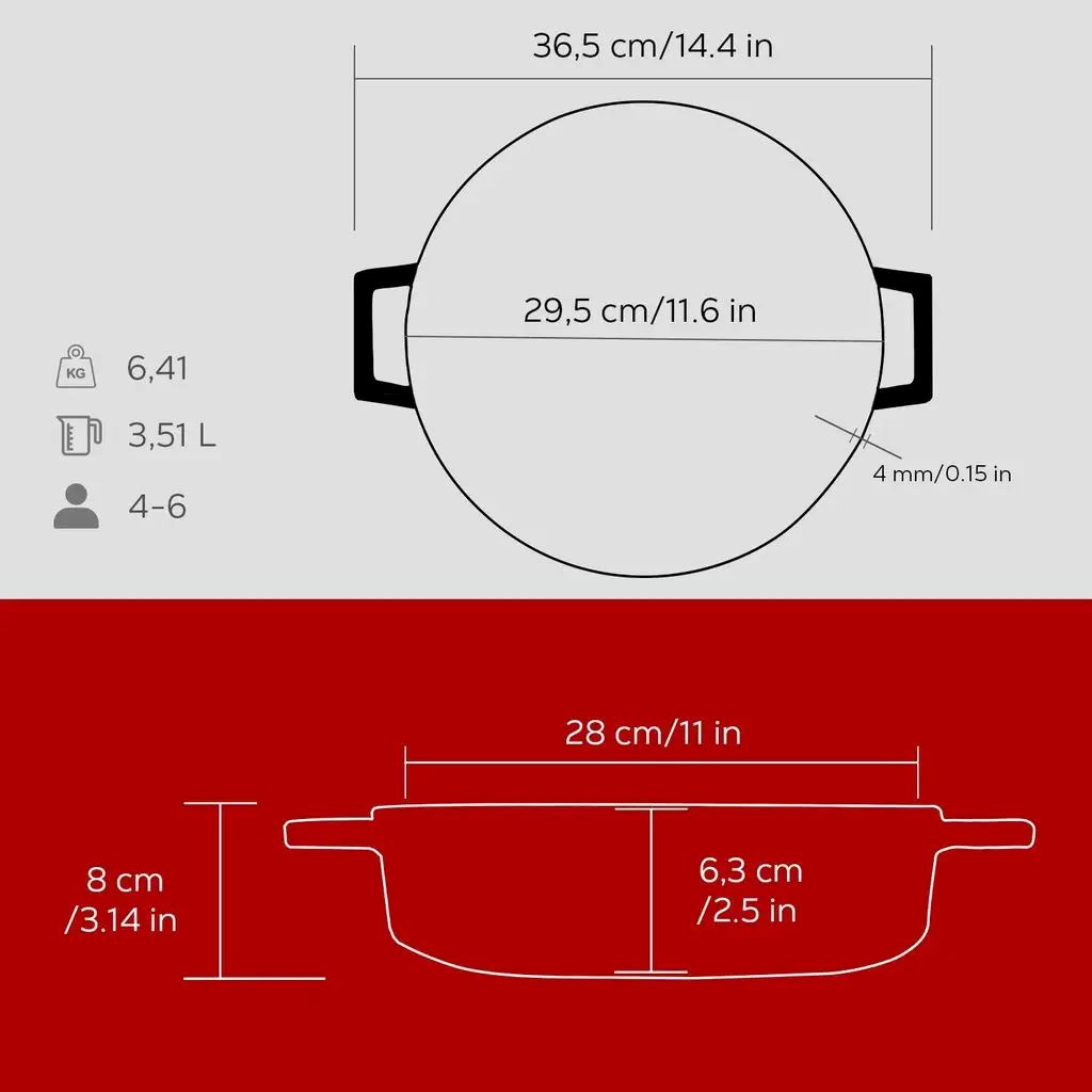 Лонч са поклопцем, пречник 28 цм, запремина 3,5 Л, од ливеног гвожђа, бренд Lava