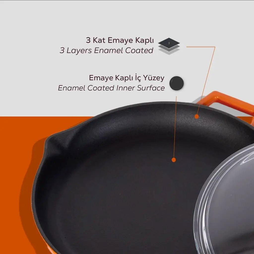 Poklopac za prženje, brend Lava, prečnika 26 cm, napravljen od livenog gvožđa, obezbeđen poklopcem od termoresistentnog stakla.