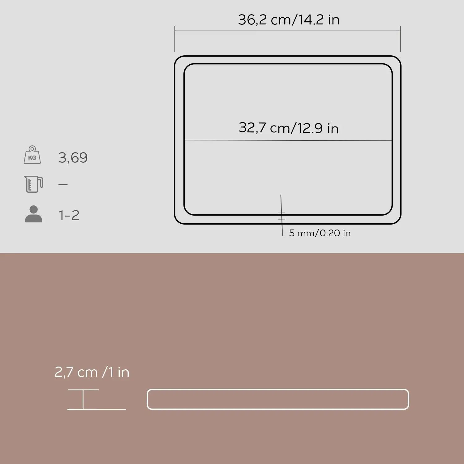 Drvena podloga ima dimenzije 27, 2 k 36, 2 k 2, 7 cm.