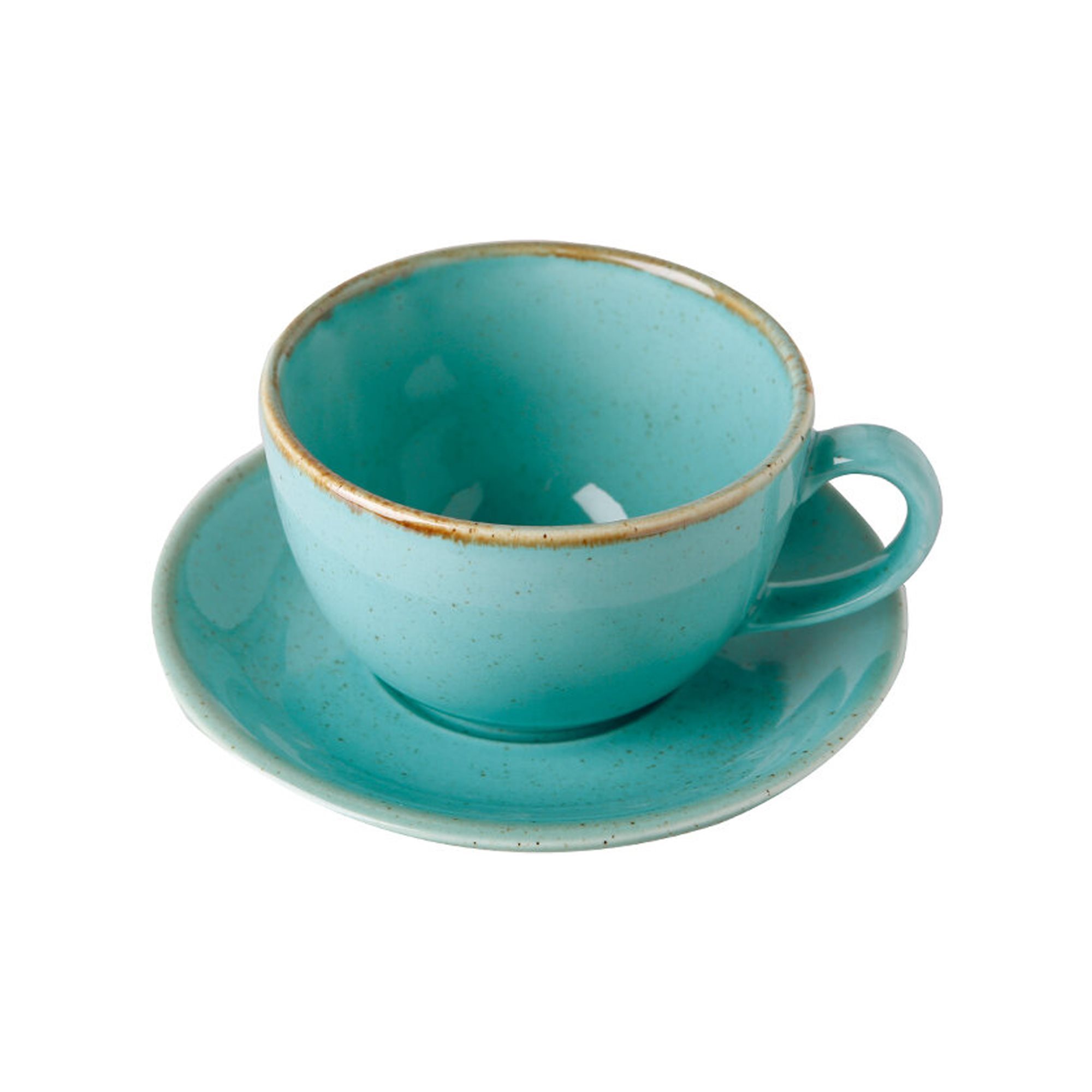 Tekopp och fat, tillverkade av Porland, kapacitet 370 ml, gjorda av porslin.