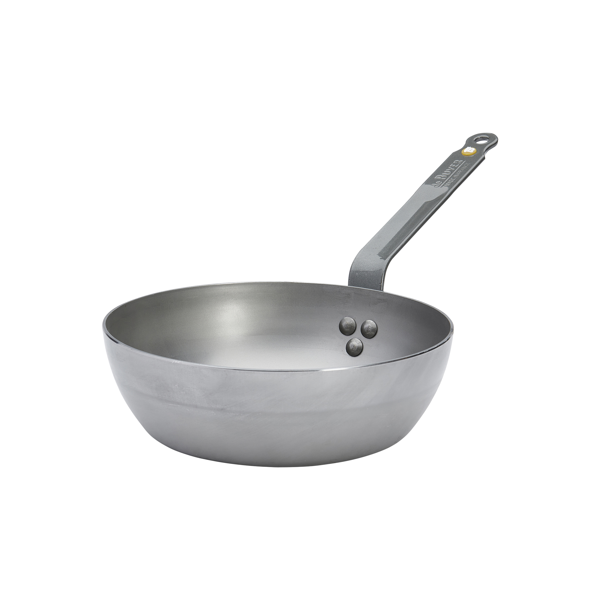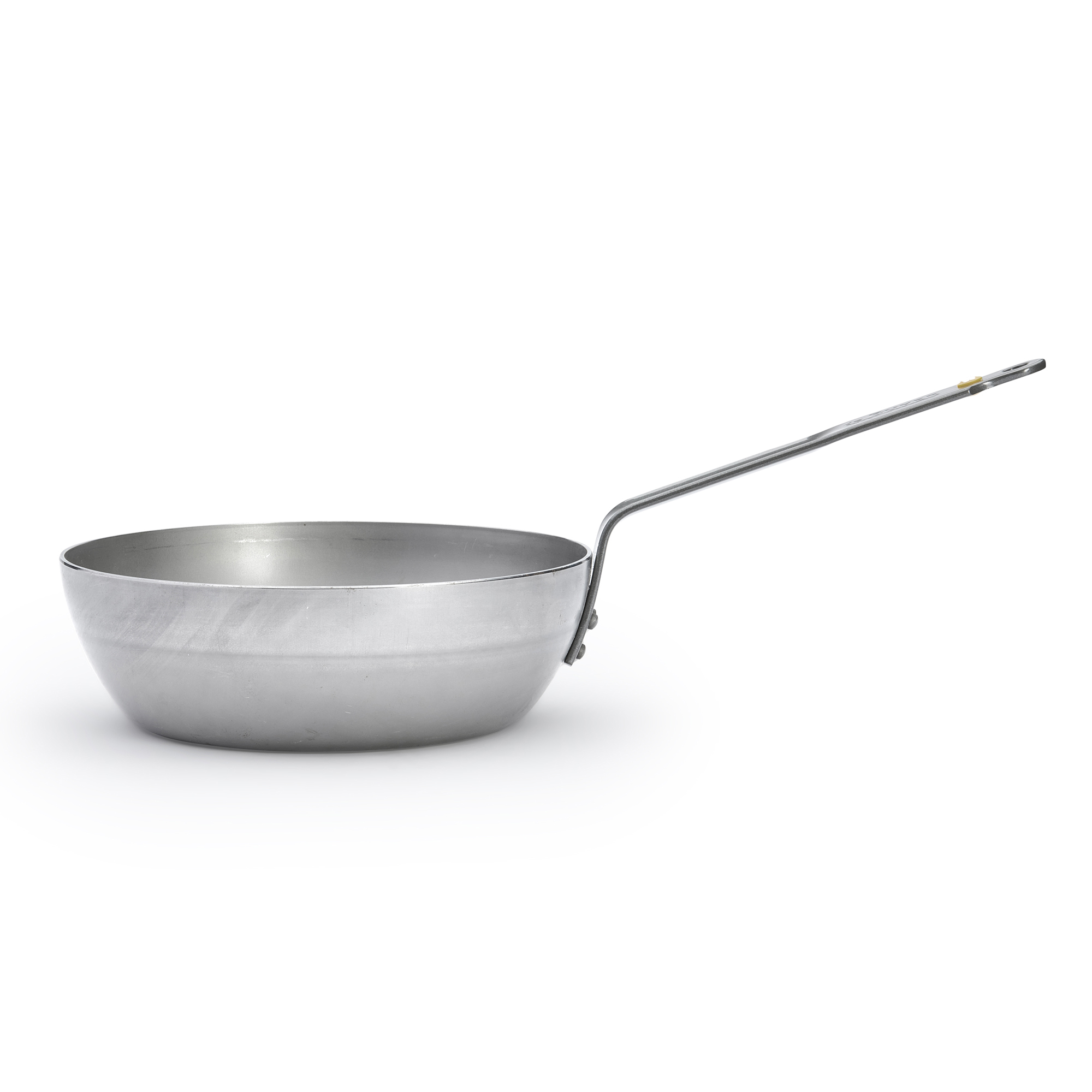 Professionell djup sautépanna av professionell kvalitet - märke de Buyer - diameter 24 cm, höjd 8 cm, tillverkad av 2,5 mm tjockt stål som inte deformeras.