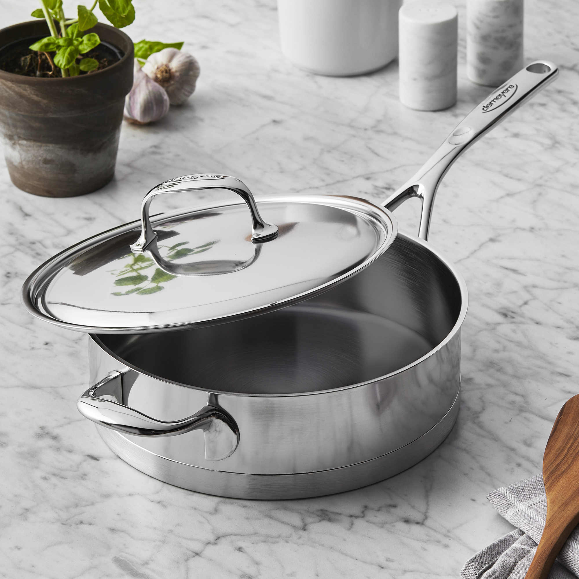 Stekpanna med lock, märke Demeyere, 24 cm diameter, 2,8 L kapacitet, gjord av 7-PLY material, med 18/10 rostfritt stål svetsade handtag.